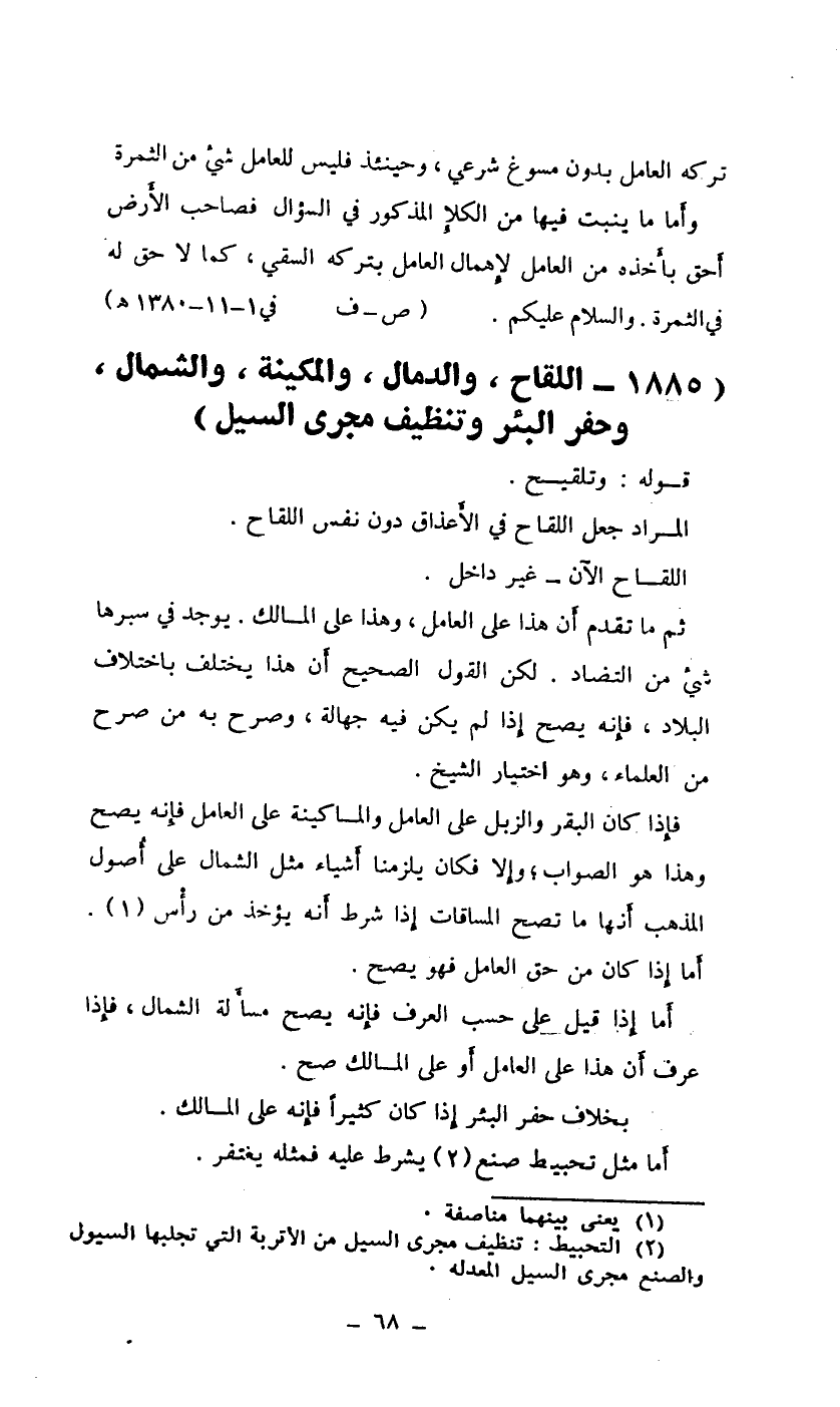 1885- اللقاح، والدمال، والمكينة، والشمال، وحفر البئر وتنظيف مجرى السيل