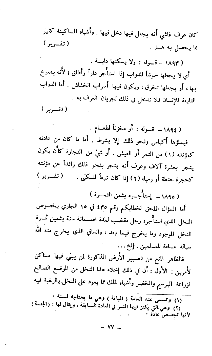 أما السؤال الملحق لخطابكم رقم 435 في 15 الجاري بخصوص النخل الذي استأجره رجل مقضب لمدة خمسمائة سنة بثمين ثمرة النخل الموجود وما يخرج فيما بعد، والساقي الذي يخرج منه الله سيالة عامة للمسلمين.. إلخ..