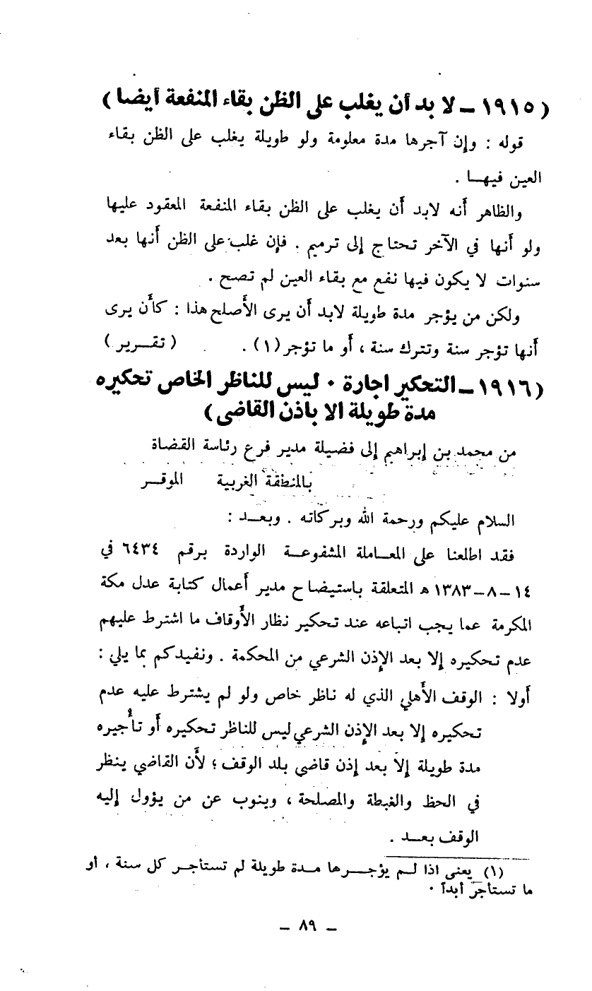 1916 - التحكير إجارة. ليس للناظر الخاص تحكيره مدة طويلة إلا بإذن القاضي