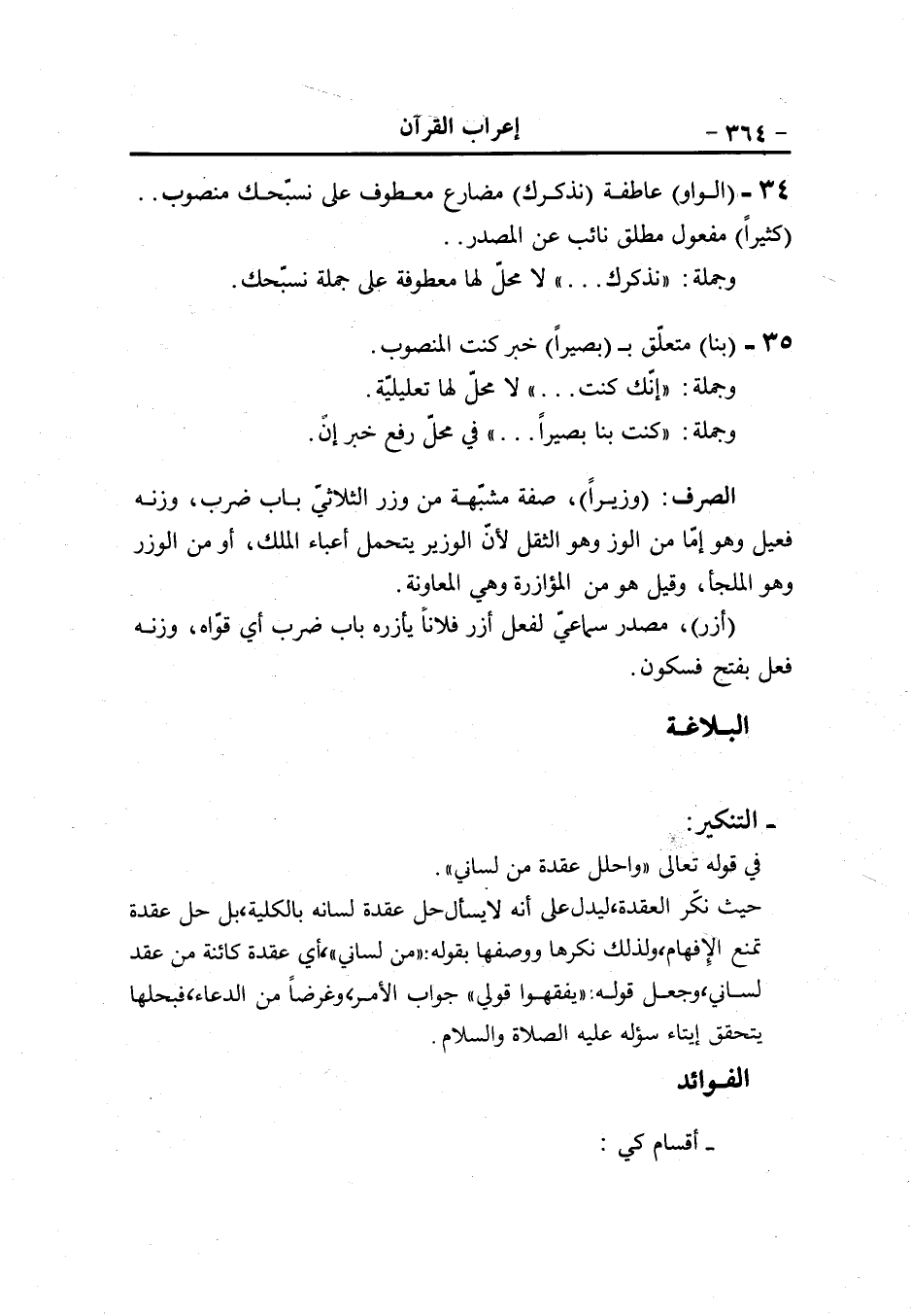 والواو فاعل (لآدم) جارّ ومجرور متعلّق ب (اسجدوا) ، وعلامة الجرّ الفتحة لامتناعه من الصرف (الفاء) عاطفة (سجدوا) فعل ماض مبني على الضمّ ... والواو فاعل (إلّا) حرف للاستثناء (إبليس) مستثنى منصوب (لم) حرف نفي وقلب وجزم (يكن) مضارع مجزوم ناقص- ناسخ- واسمه ضمير مستتر تقدره هو (من الساجدين) جارّ ومجرور متعلّق بمحذوف خبر يكن.