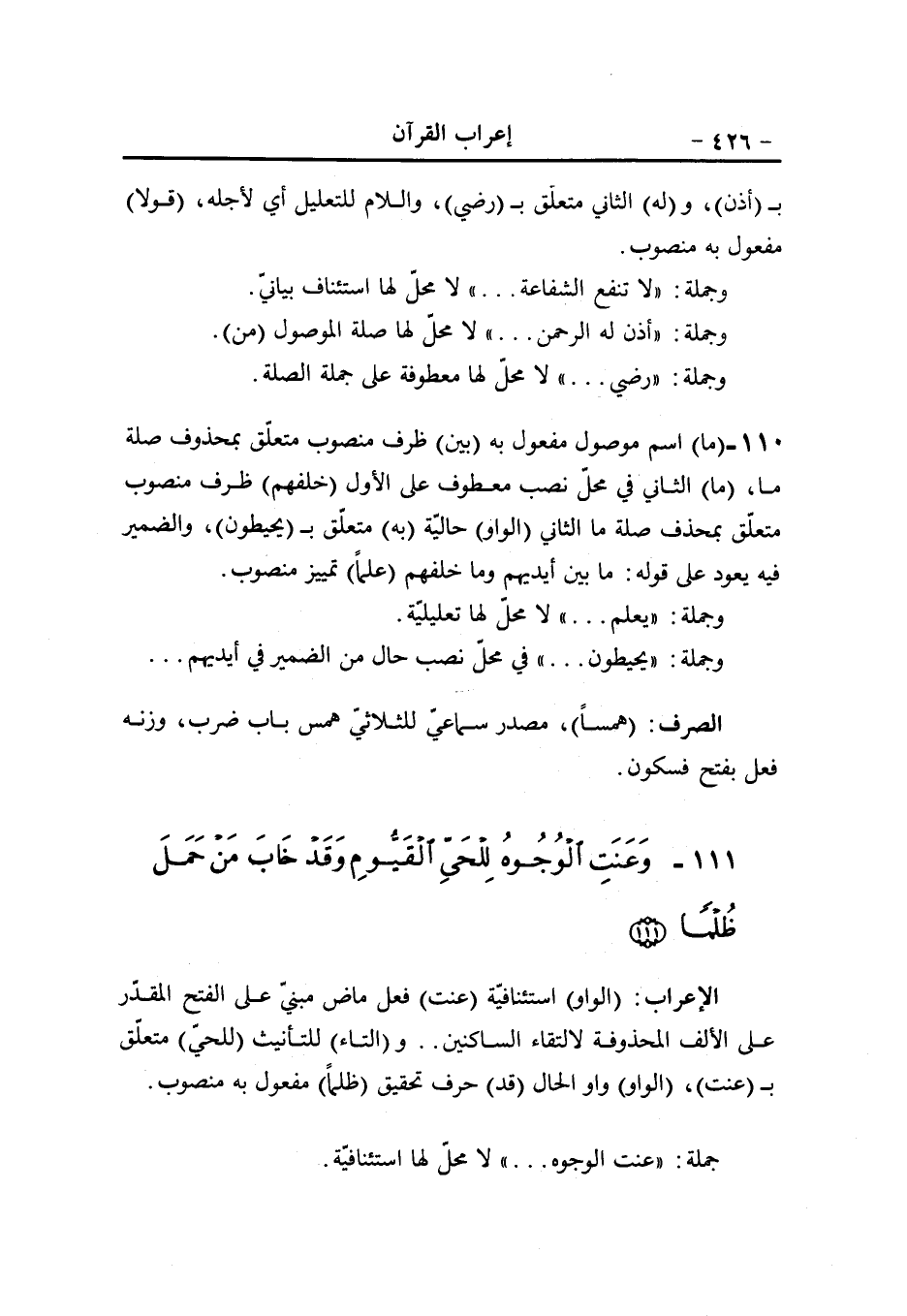 زمان منصوب متعلّق ب (ننساهم) وهو مضارع مرفوع وعلامة الرفع الضمّة المقدّرة على الألف ... و (هم) ضمير مفعول به، والفاعل ضمير مستتر تقديره نحن للتعظيم (الكاف) حرف جرّ وتشبيه «1» ، (ما) حرف مصدري (نسوا) مثل اتّخذوا وقالوا (لقاء) مفعول به منصوب (يوم) مضاف إليه مجرور و (هم) ضمير مضاف إليه (ها) حرف تنبيه (ذا) اسم إشارة مبني في محلّ جرّ نعت ليوم «2» .