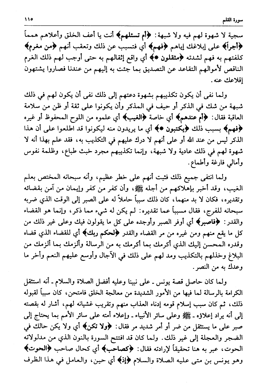 ولما كان قد افتتح السورة بالنون الذي من مدلولاته الحوت ، عبر به هنا تحقيقاً لإرادته فقال : ( كصاحب ) أي حكال صاحب ) الحوت ( وهو يونس بن متى عليه الصلاة والسلام ) إذ ) أي حين ، والعامل في هذا الظرف
