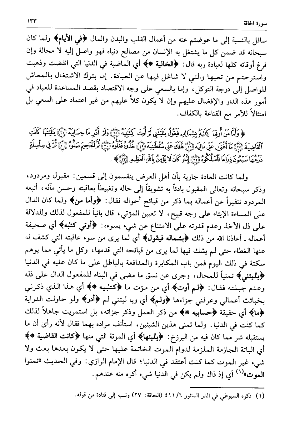 الحاقة : ( 25 - 33 ) وأما من أوتي. .. . .