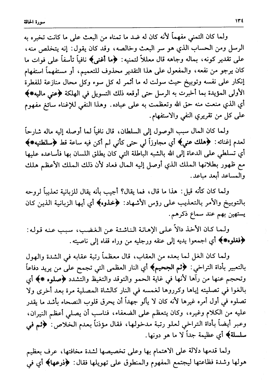 ولما كان المال سبب الوصول إلى السلطان ، قال نافياً لما أوصله إليه ماله شارحاً لعدم إغنائه ، ) هلك عني ) أي مجاوزاً لي حتى كأني لم أكن فيه ساعة قط ) سلطانيه ) أي تسلطي على الدعاة إلى الله بالشبه الباطلة التي كان يطلب اللسان بها فأساعده عليها مع ظهور بطلانها الملك الذي أوصل إليه المال فعاد لأن ذلك الملك الأعظم هلك والمساعد أبعد مباعد .