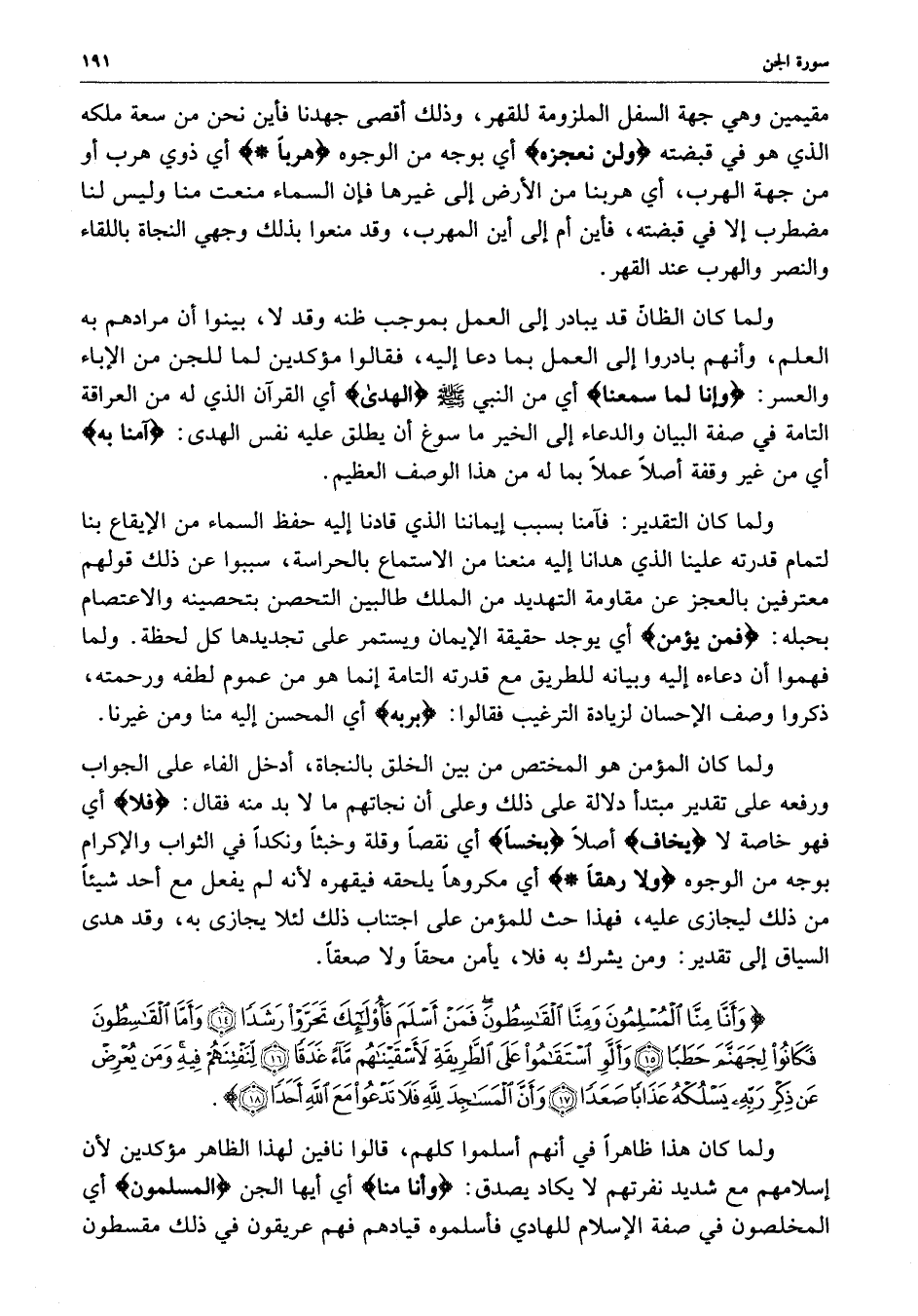 ) وَأَنَّا مِنَّا الْمُسْلِمُونَ وَمِنَّا الْقَاسِطُونَ فَمَنْ أَسْلَمَ فَأُوْلَئِكَ تَحَرَّوْاْ رَشَداً وَأَمَّا الْقَاسِطُونَ فَكَانُواْ لِجَهَنَّمَ حَطَباً وَأَلَّوِ اسْتَقَامُواْ عَلَى الطَّرِيقَةِ لأَسْقَيْنَاهُم مَّآءً غَدَقاً لِّنَفْتِنَهُمْ فِيهِ وَمَن يُعْرِضْ عَن ذِكْرِ رَبِّهِ يَسْلُكْهُ عَذَاباً صَعَداً وَأَنَّ الْمَسَاجِدَ لِلَّهِ فَلاَ تَدْعُواْ مَعَ اللَّهِ أَحَداً ( ( )