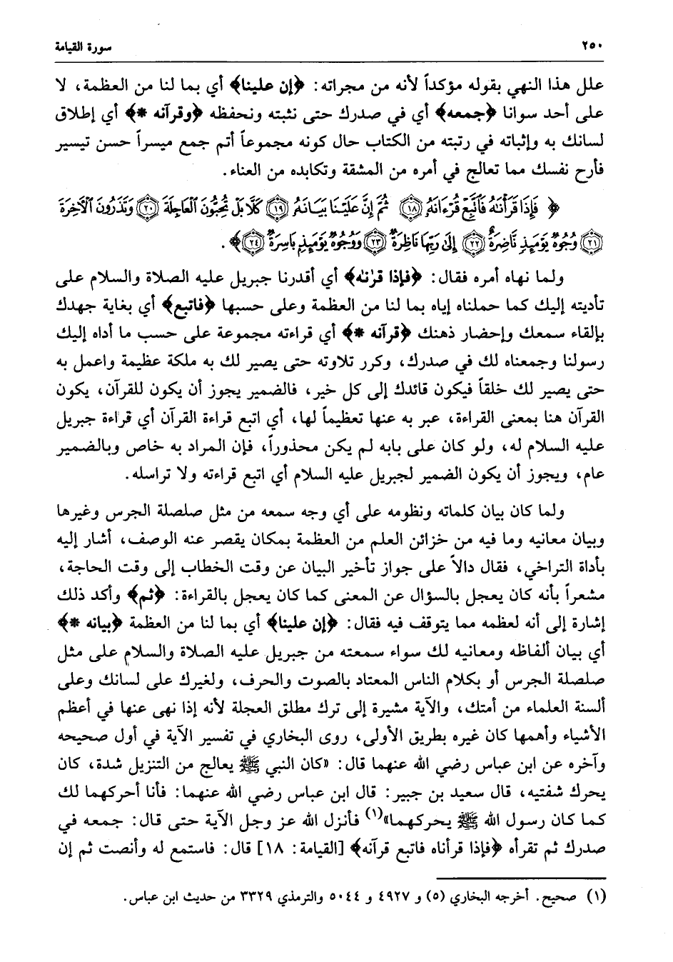 ) فَإِذَا قَرَأْنَاهُ فَاتَّبِعْ قُرْآنَهُ ثُمَّ إِنَّ عَلَيْنَا بَيَانَهُ كَلاَّ بَلْ تُحِبُّونَ الْعَاجِلَةَ وَتَذَرُونَ الآخِرَةَ وُجُوهٌ يَوْمَئِذٍ نَّاضِرَةٌ إِلَى رَبِّهَا نَاظِرَةٌ وَوُجُوهٌ يَوْمَئِذٍ بَاسِرَةٌ ( ( )