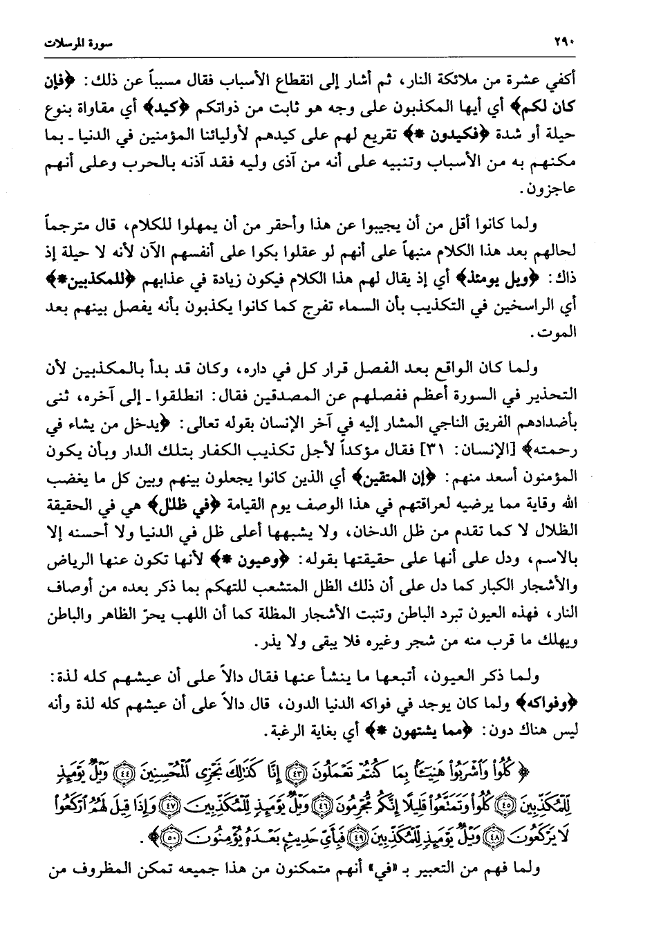 ) كُلُواْ وَاشْرَبُواْ هَنِيئاً بِمَا كُنتُمْ تَعْمَلُونَ إِنَّا كَذَلِكَ نَجْزِي الْمُحْسِنِينَ وَيْلٌ يَوْمَئِذٍ لِّلْمُكَذِّبِينَ كُلُواْ وَتَمَتَّعُواْ قَلِيلاً إِنَّكُمْ مُّجْرِمُونَ وَيْلٌ يَوْمَئِذٍ لِّلْمُكَذِّبِينَ وَإذَا قِيلَ لَهُمُ ارْكَعُواْ لاَ يَرْكَعُونَ وَيْلٌ يَوْمَئِذٍ لِّلْمُكَذِّبِينَ فَبِأَيِّ حَدِيثٍ بَعْدَهُ يُؤْمِنُونَ ( ( )
