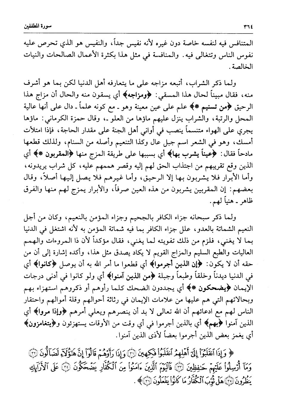 ) وَإِذَا انقَلَبُواْ إِلَى أَهْلِهِمْ انقَلَبُواْ فَكِهِينَ وَإِذَا رَأَوْهُمْ قَالُواْ إِنَّ هَؤُلاَءِ لَضَالُّونَ وَمَآ أُرْسِلُواْ عَلَيْهِمْ حَافِظِينَ فَالْيَوْمَ الَّذِينَ آمَنُواْ مِنَ الْكُفَّارِ يَضْحَكُونَ عَلَى الأَرَآئِكِ يَنظُرُونَ هَلْ ثُوِّبَ الْكُفَّارُ مَا كَانُواْ يَفْعَلُونَ ( ( )