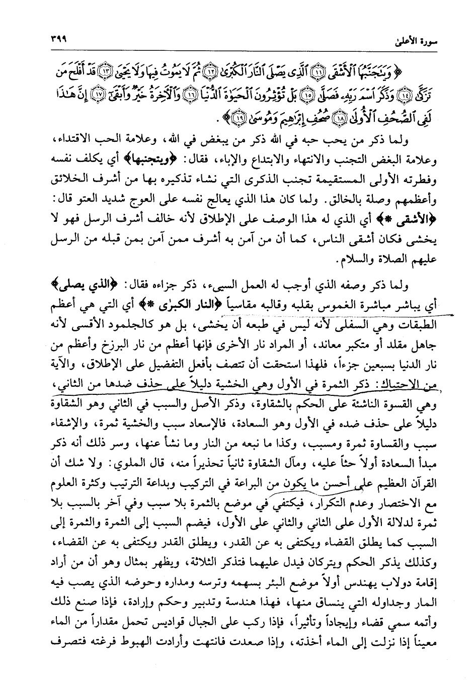 ) وَيَتَجَنَّبُهَا الأَشْقَى الَّذِى يَصْلَى النَّارَ الْكُبْرَى ثُمَّ لاَ يَمُوتُ فِيهَا وَلاَ يَحْيَا قَدْ أَفْلَحَ مَن تَزَكَّى وَذَكَرَ اسْمَ رَبِّهِ فَصَلَّى بَلْ تُؤْثِرُونَ الْحَيَاةَ الدُّنْيَا وَالآخِرَةُ خَيْرٌ وَأَبْقَى إِنَّ هَذَا لَفِي الصُّحُفِ الأُولَى صُحُفِ إِبْرَاهِيمَ وَمُوسَى ( ( )