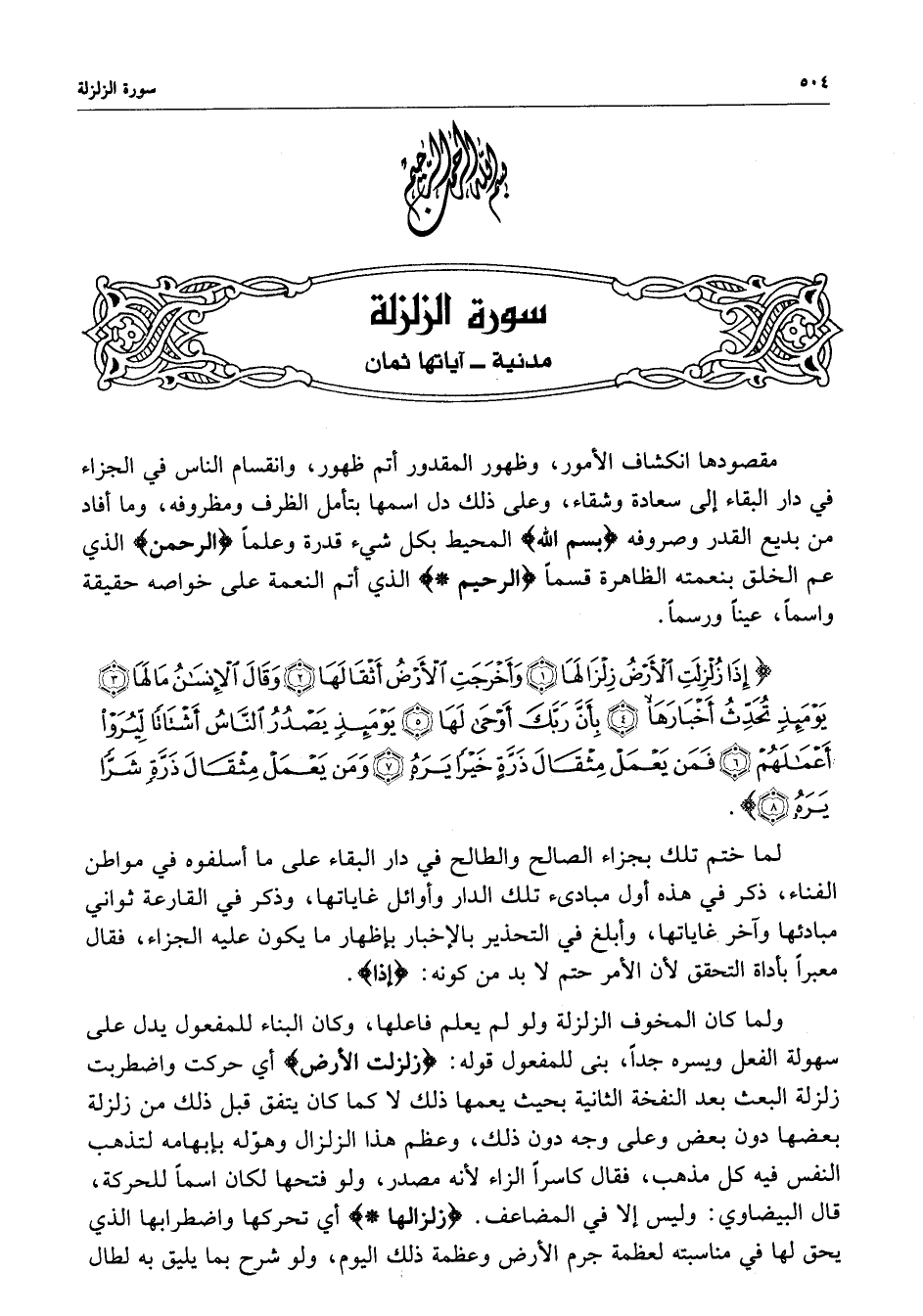 الزلزلة : ( 1 - 8 ) إذا زلزلت الأرض. .. . .