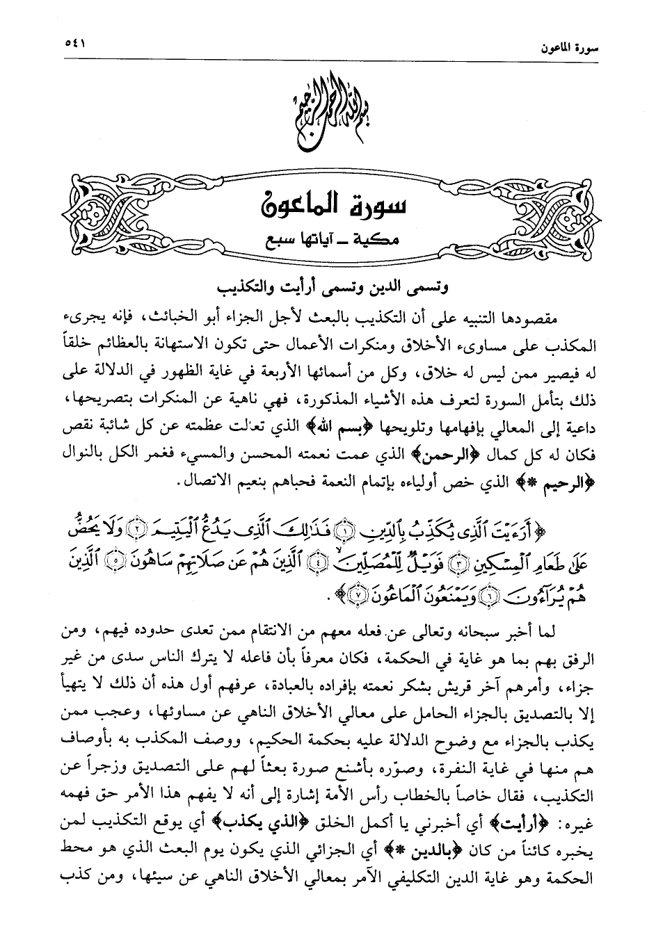 ) أَرَأَيْتَ الَّذِي يُكَذِّبُ بِالدِّينِ فَذَلِكَ الَّذِي يَدُعُّ الْيَتِيمَ وَلاَ يَحُضُّ عَلَى طَعَامِ الْمِسْكِينِ فَوَيْلٌ لِّلْمُصَلِّينَ الَّذِينَ هُمْ عَن صَلاَتِهِمْ سَاهُونَ الَّذِينَ هُمْ يُرَآءُونَ وَيَمْنَعُونَ الْمَاعُونَ ( ( )