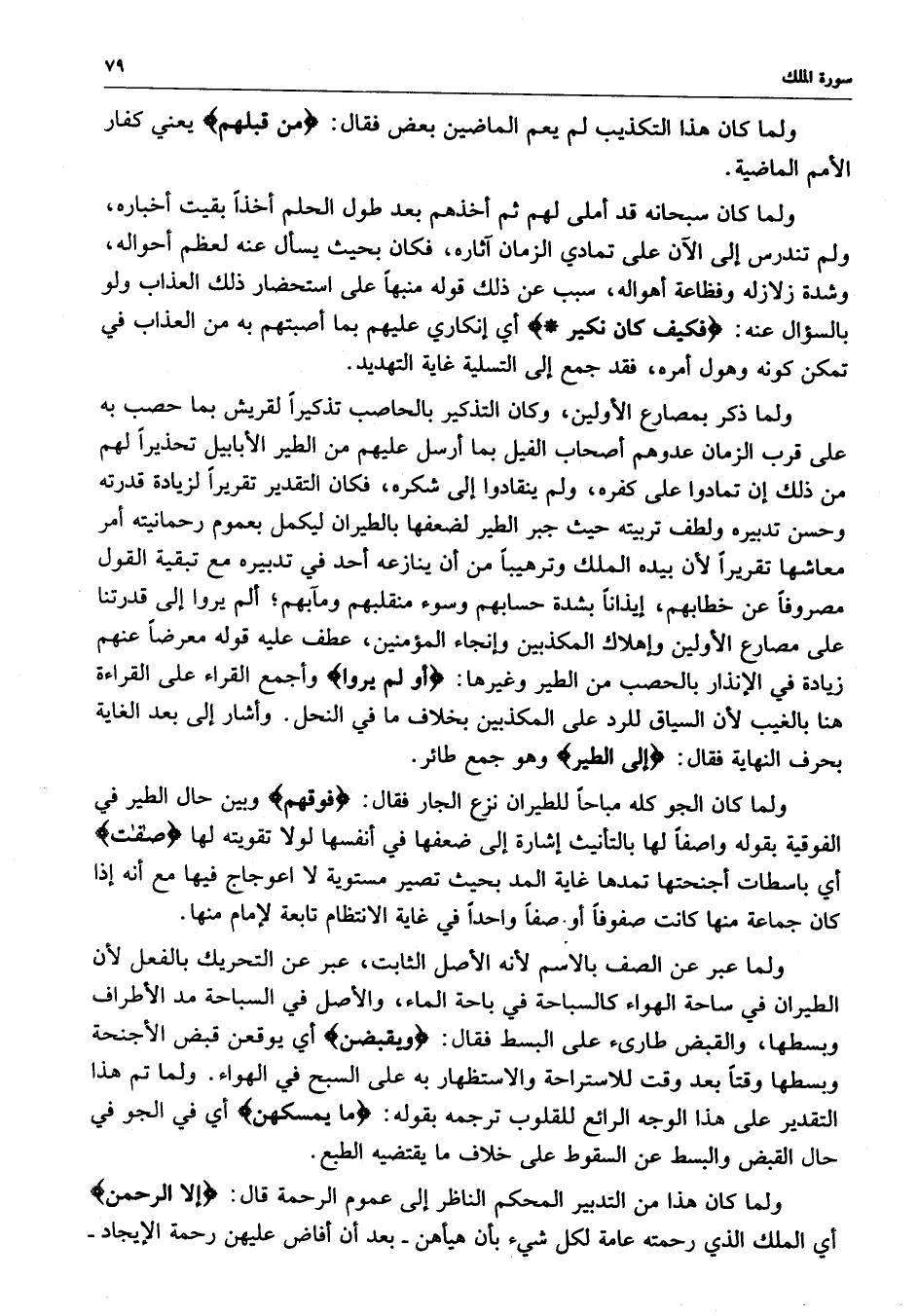 ولما ذكر بمصارع الأولين ، وكان التذكير بالحاصب تذكيراً لقريش بما حصب به على قرب الزمان عدوهم أصحاب الفيل بما أرسل عليهم من الطير الأبابيل تحذيراً لهم من ذلك إن تمادوا على كفره ، ولم ينقادوا إلى شكره ، فكان التقدير تقريراً رحمانيته أمر معاشها تقريراً لأن بيده الملك وترهيباً من أن ينازعه أحد في تدبيره مع تبقية القول مصروفاً عن خطابهم ، إيذاناً بشدة حسابهم وسوء منقلبهم ومآبهم ؛ ألم يروا إلى قدرتنا على مصارع الأولين وإهلاك المكذبين وإنجاء المؤمنين ، عطف قوله معرضاً عنهم زيادة في الإنذار بالحصب من الطير وغيرها : ( أو لم يروا ( وأجمع القراء على القراءة هنا بالغيب لأن السياق للرد على المكذبين بخلاف ما في النحل .