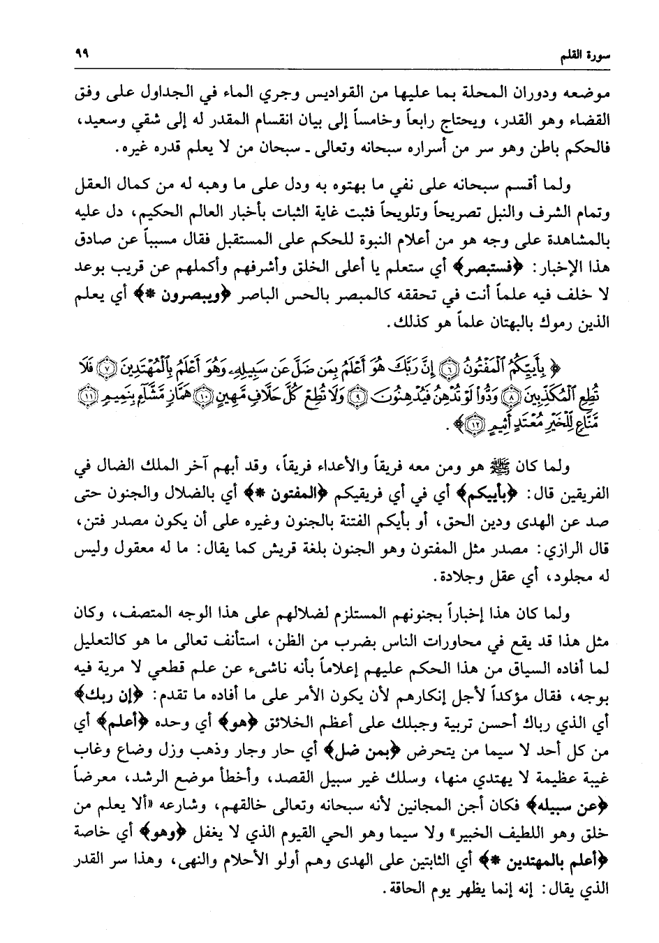 ) بِأَيِّكُمُ الْمَفْتُونُ إِنَّ رَبَّكَ هُوَ أَعْلَمُ بِمَن ضَلَّ عَن سَبِيلِهِ وَهُوَ أَعْلَمُ بِالْمُهْتَدِينَ فَلاَ تُطِعِ الْمُكَذِّبِينَ وَدُّواْ لَوْ تُدْهِنُ فَيُدْهِنُونَ وَلاَ تُطِعْ كُلَّ حَلاَّفٍ مَّهِينٍ هَمَّازٍ مَّشَّآءِ بِنَمِيمٍ مَّنَّاعٍ لِّلْخَيْرِ مُعْتَدٍ أَثِيمٍ ( ( )