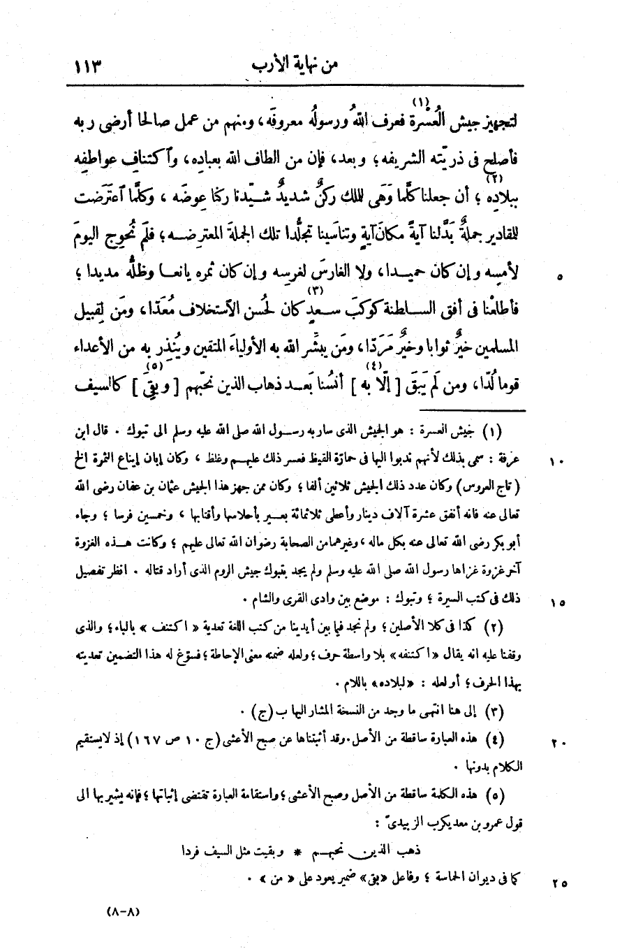 لتجهيز جيش العسرة «1» فعرف الله ورسوله معروفه، ومنهم من عمل صالحا أرضى ربه فأصلح فى ذريّته الشريفه؛ وبعد، فإن من الطاف الله بعباده، واكتناف عواطفه ببلاده «2» ؛ أن جعلنا كلّما وهى للملك ركن شديد شيّدنا ركنا عوضه، وكلّما اعترضت للمقادير جملة بدّلنا آية مكان آية وتناسينا تجلّدا تلك الجملة المعترضه؛ فلم نحوج اليوم لأمسه وإن كان حميدا، ولا الغارس لغرسه وإن كان ثمره يانعا وظلّه مديدا؛ فأطلعنا فى أفق السلطنة كوكب سعد «3» كان لحسن الاستخلاف معدّا، ومن لقبيل المسلمين خير ثوابا وخير مردّا، ومن بشّر الله به الأولياء المتقين وينذر به من الأعداء قوما لدّا، ومن لم يبق [إلّا به «4» ] أنسنا بعد ذهاب الذين نحبّهم [وبقى «5» ] كالسيف