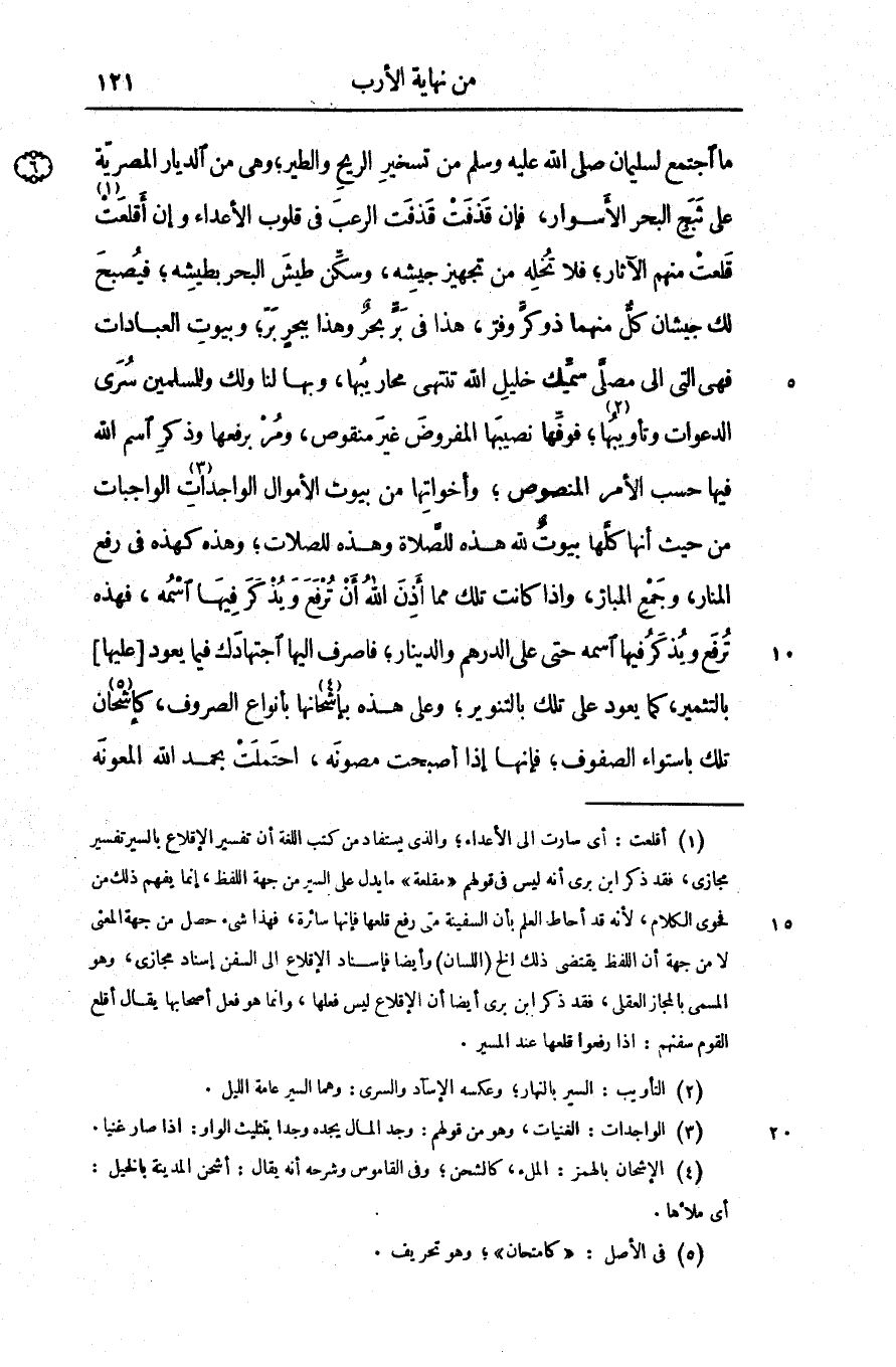 ما اجتمع لسليمان صلّى الله عليه وسلّم من تسخير الريح والطير؛ وهى من الديار المصريّة على ثبج البحر الأسوار، فإن قذفت قذفت الرعب فى قلوب الأعداء وإن أقلعت «1» قلعت منهم الآثار؛ فلا تخله من تجهيز جيشه، وسكّن طيش البحر بطيشه؛ فيصبح لك جيشان كلّ منهما ذو كرّ وفرّ، هذا فى برّ بحر وهذا ببحر برّ؛ وبيوت العبادات فهى التى الى مصلّى سميّك خليل الله تنتهى محاريبها، وبها لنا ولك وللمسلمين سرى الدعوات وتأويبها «2» ؛ فوفّها نصيبها المفروض غير منقوص، ومر برفعها وذكر اسم الله فيها حسب الأمر المنصوص؛ وأخواتها من بيوت الأموال الواجدات»