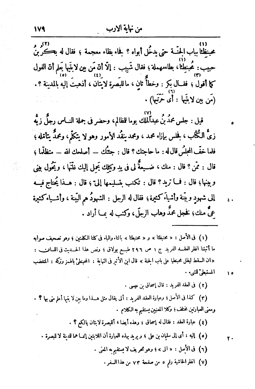 محبنظئا «1» بباب الجنّة حتى يدخل أبواه؟ فجاء بظاء معجمة؛ فقال له بكر «2» بن حبيب: محبنطئا، بطاء مهملة؛ فقال شبيب: إلّا أنّ من بين لابتيها يعلم أنّ القول كما أقول «3» ؛ فقال بكر: وخطأ ثان، ما للبصرة لابتان «4» ، أذهبت إليه «5» بالمدينة؟.