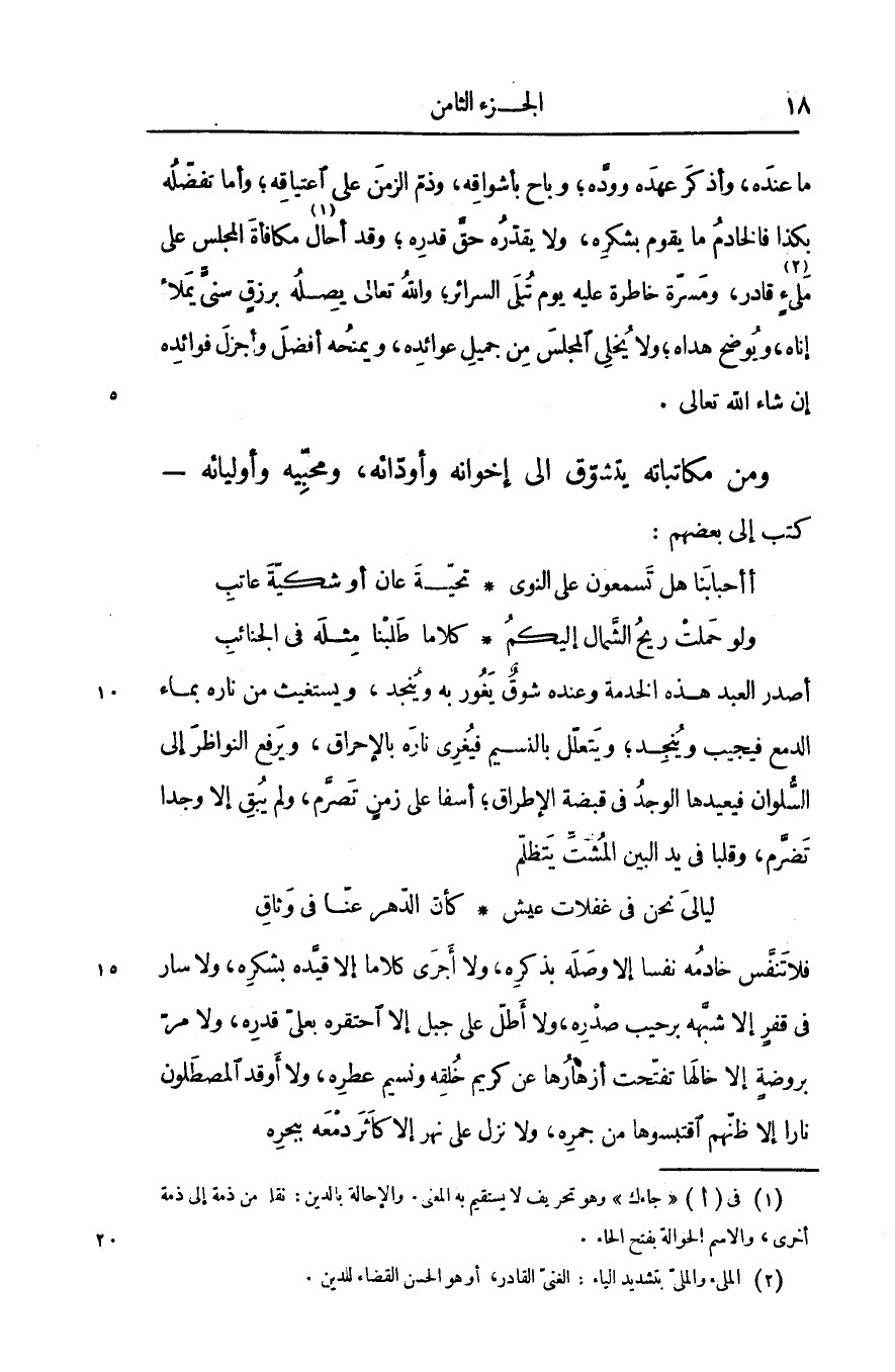 ومن مكاتباته يتشوّق الى إخوانه وأودّائه، ومحبّيه وأوليائه- كتب إلى بعضهم: