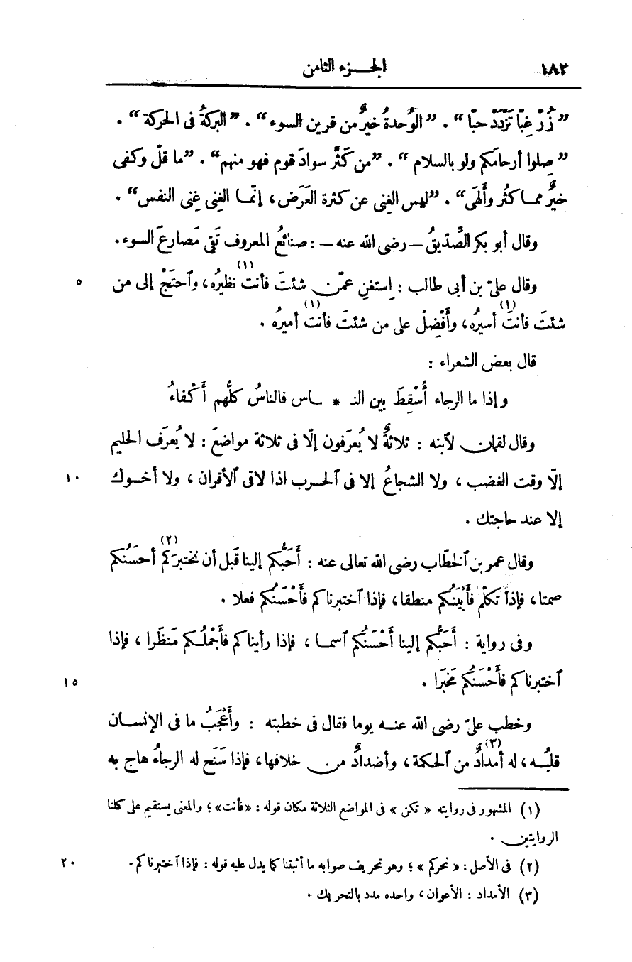 وخطب علىّ رضى الله عنه يوما فقال فى خطبته: وأعجب ما فى الإنسان قلبه، له أمداد «3» من الحكمة، وأضداد من خلافها، فإذا سنح له الرجاء هاج به
