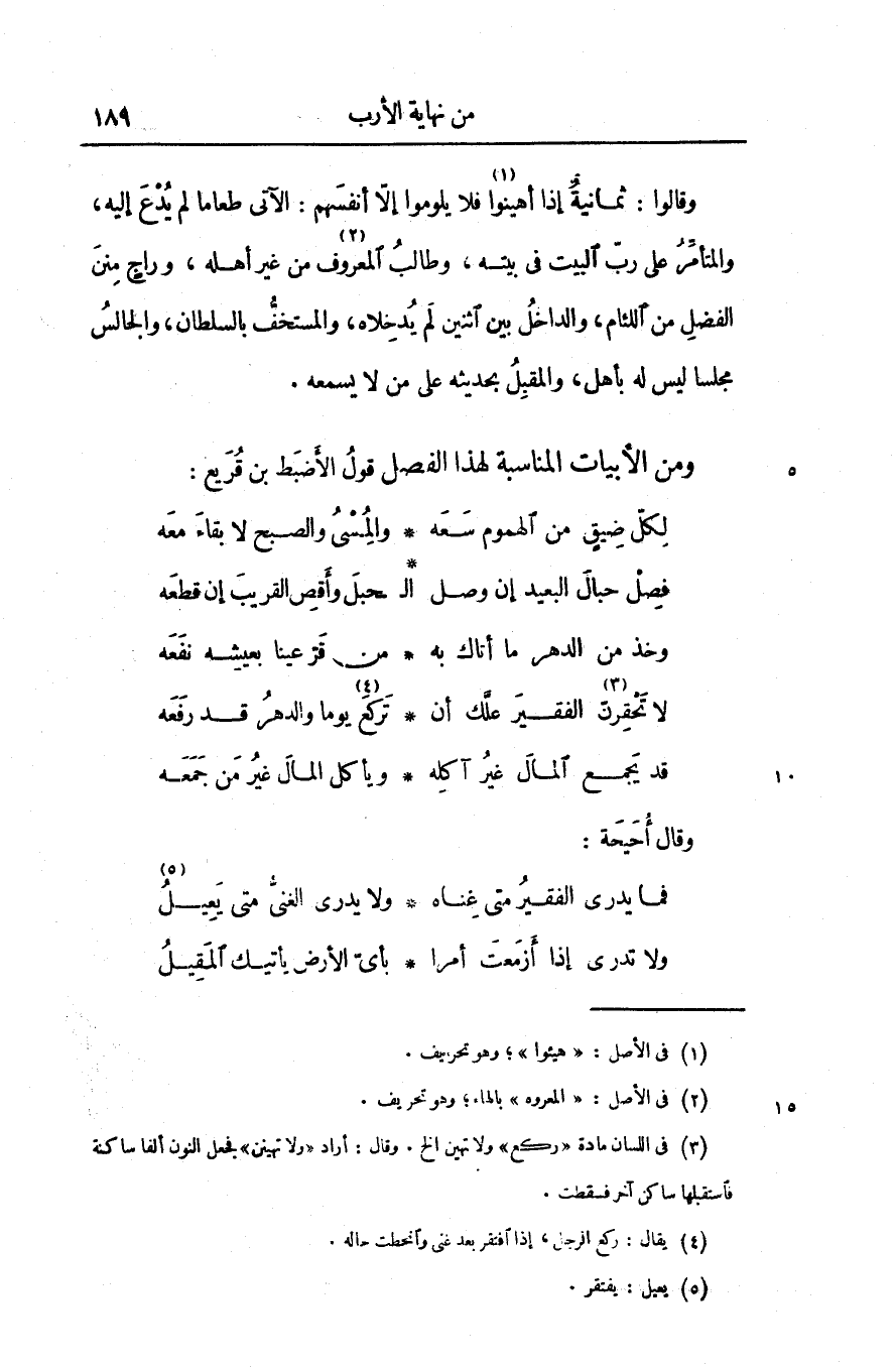 ومن الأبيات المناسبة لهذا الفصل قول الأضبط بن قريع: