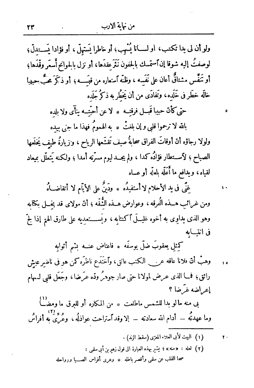 ومن غرائب هذه الفرقه، وعوارض هذه الشّقة؛ أنّ مولاى قد بخل بكتابه وهو الذى يداوى به أخوه غليل اكتئابه، ويستعديه على طارق الهمّ إذا لجّ فى انتيابه