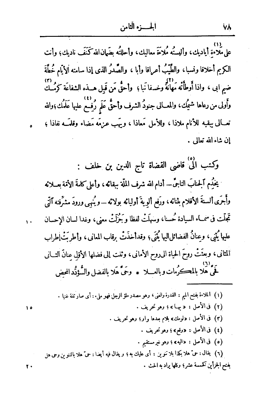 وكتب الى «5» قاضى القضاة تاج الدين بن خلف: