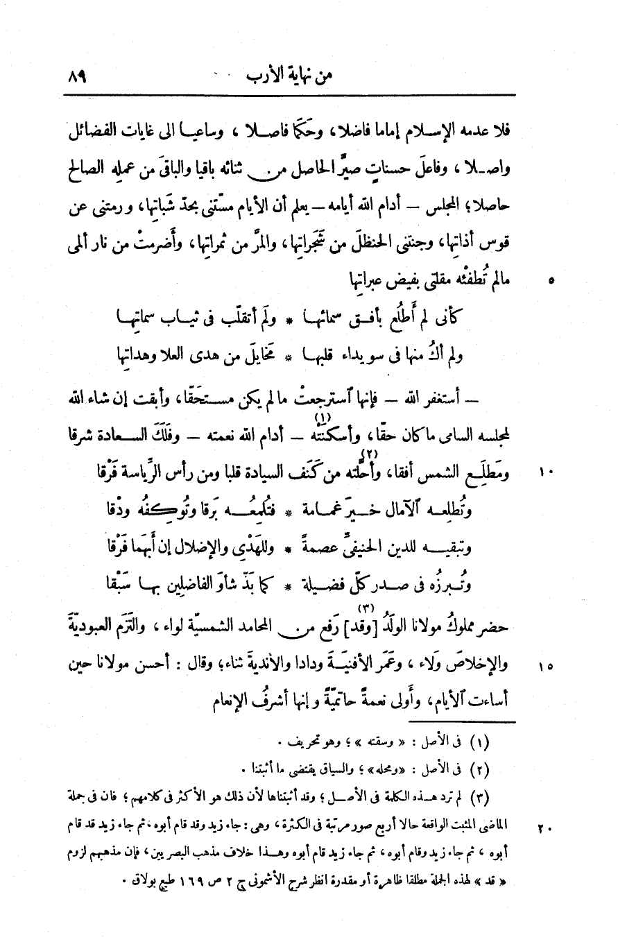 - أستغفر الله- فإنها استرجعت ما لم يكن مستحقّا، وأبقت إن شاء الله لمجلسه السامى ما كان حقّا، وأسكنته «1» - أدام الله نعمته- وفلك السعادة شرقا ومطلع الشمس أفقا، وأحلّته «2» من كنف السيادة قلبا ومن رأس الرّياسة فرقا