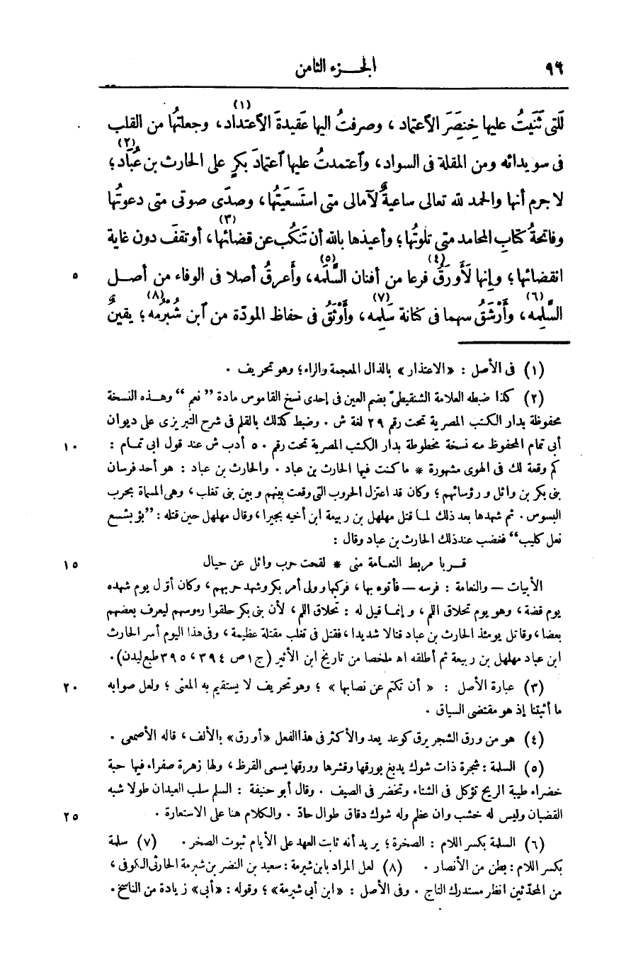 للتى ثنيت عليها خنصر الاعتماد، وصرفت اليها عقيدة الاعتداد «1» ، وجعلتها من القلب فى سويدائه ومن المقلة فى السواد، واعتمدت عليها اعتماد بكر على الحارث بن عباد «2» ؛ لا جرم أنها والحمد لله تعالى ساعية لآمالى متى استسعيتها، وصدى صوتى متى دعوتها وفاتحة كتاب المحامد متى تلوتها؛ وأعيذها بالله أن تنكب عن قضائها «3» ، أو تقف دون غاية انقضائها؛ وإنها لأورق «4» فرعا من أفنان السّلمه «5» ، وأعراق أصلا فى الوفاء من أصل السّلمه «6» ، وأرشق سهما فى كنانة سلمه «7» وأوثق فى حفاظ المودّة من ابن شبرمه «8» ؛ يقين