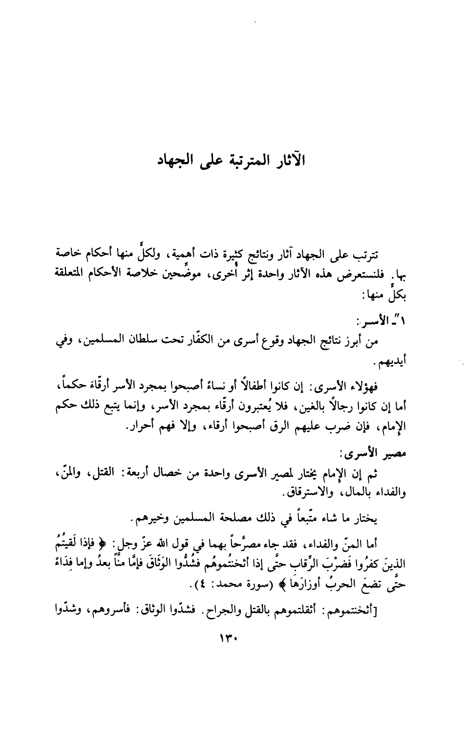 من أبرز نتائج الجهاد وقوع أسري من الكفار تحت سلطان المسلمين، وفي أيديهم.