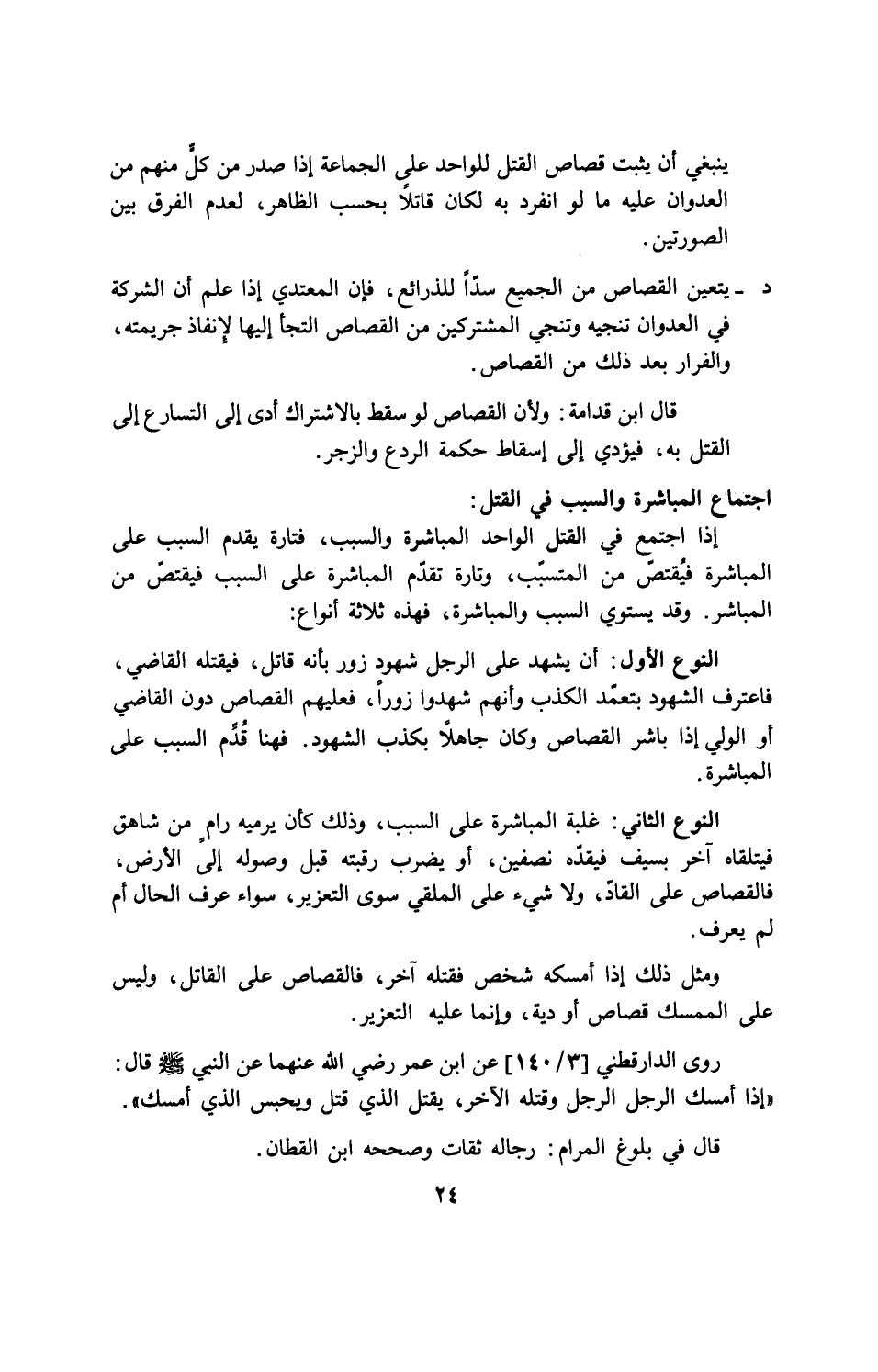 د - يتعين القصاص من الجميع سداً للذرائع، فإن المعتدي إذا علم أن الشركة في العدوان تنجيه وتنجي المشتركين من القصاص التجأ إليها لإنفاذ جريمته، والفرار بعد ذلك من القصاص.