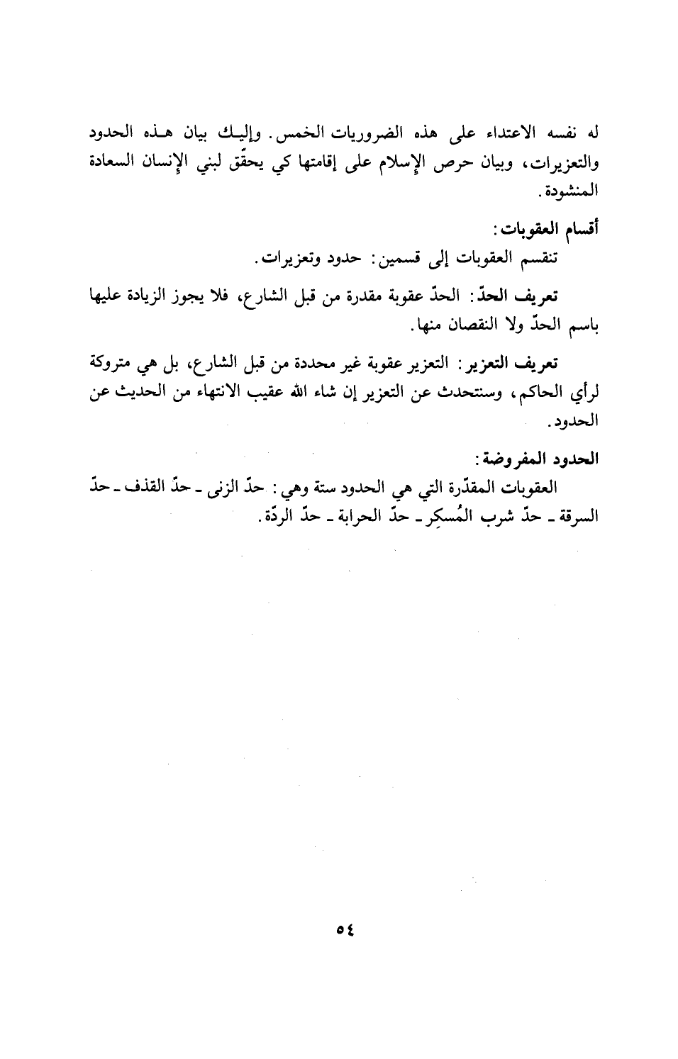له نفسه الاعتداء على هذه الضروريات الخمس. وإليك بيان هذه الحدود والتعزيرات، وبيان حرص الإسلام على إقامتها كي يحقق لبني الإنسان السعادة المنشودة.