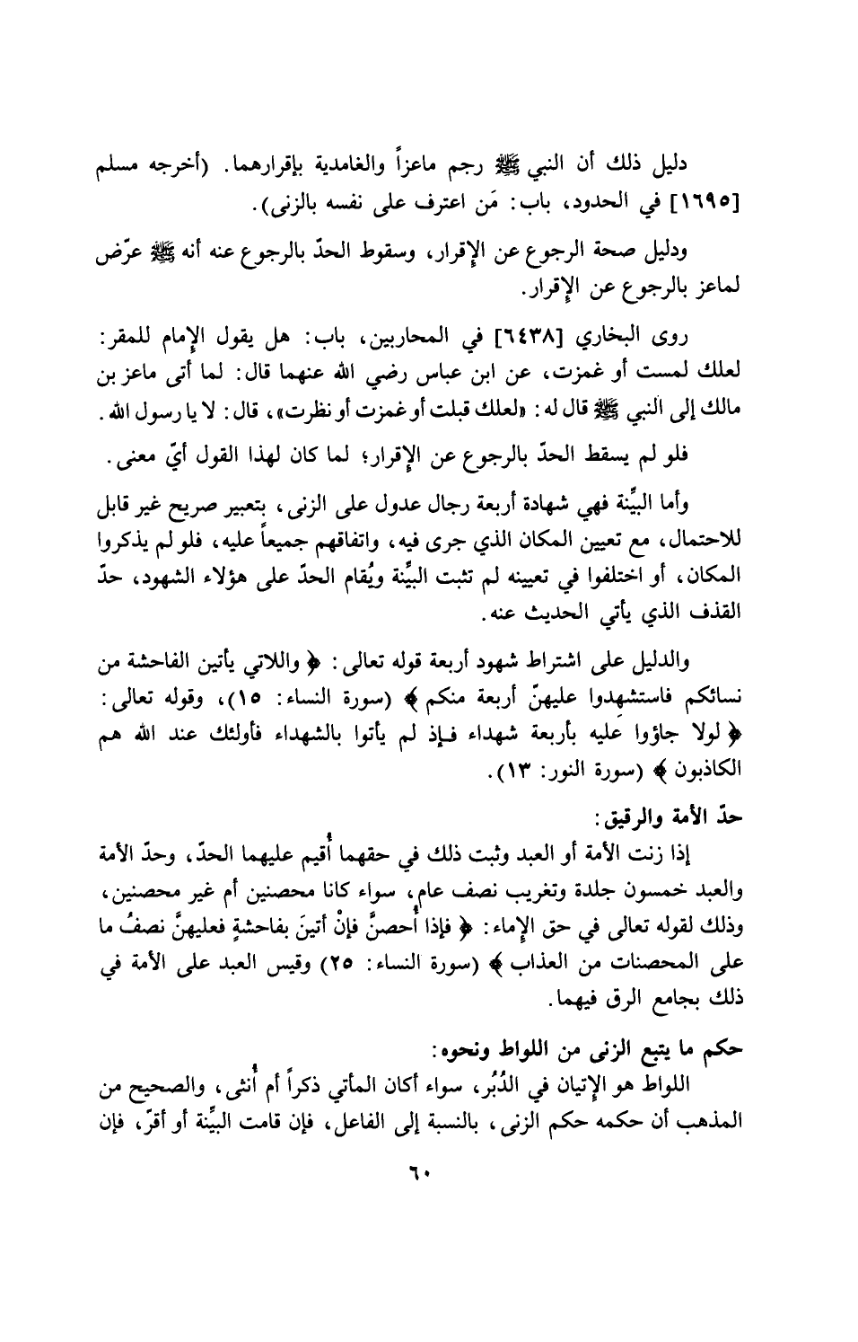 ودليل صحة الرجوع عن الإقرار، وسقوط الحد بالرجوع عنه أنه - صلى الله عليه وسلم - عرض لماعز بالرجوع عن الإقرار.