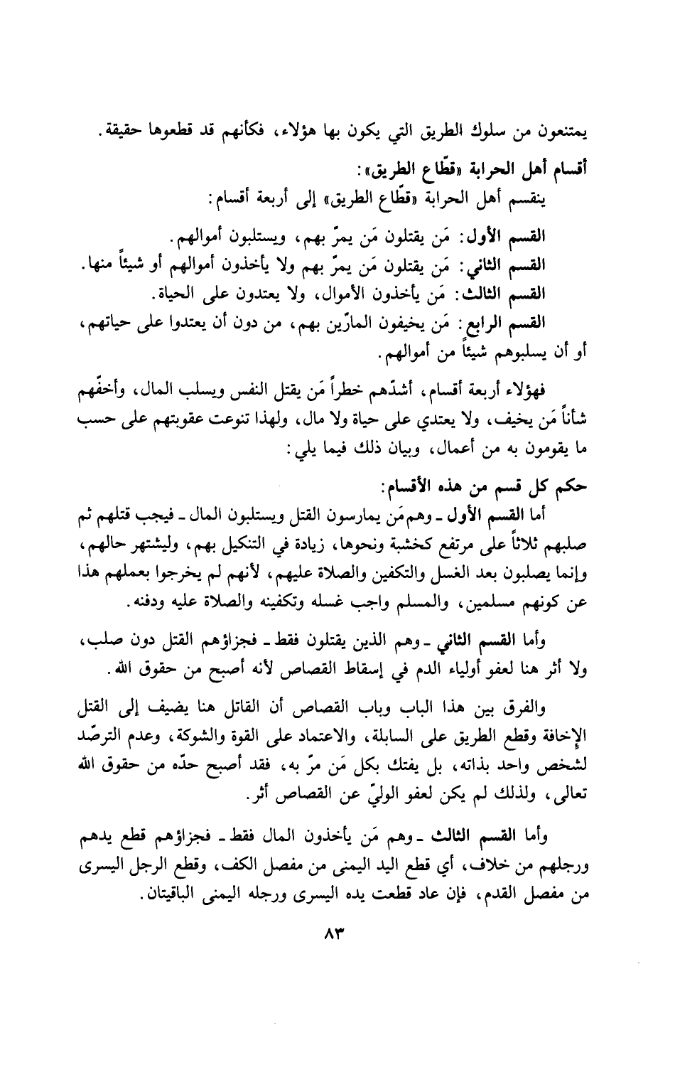 ينقسم أهل الحرابة "قطاع الطريق" إلى أربعة أقسام: