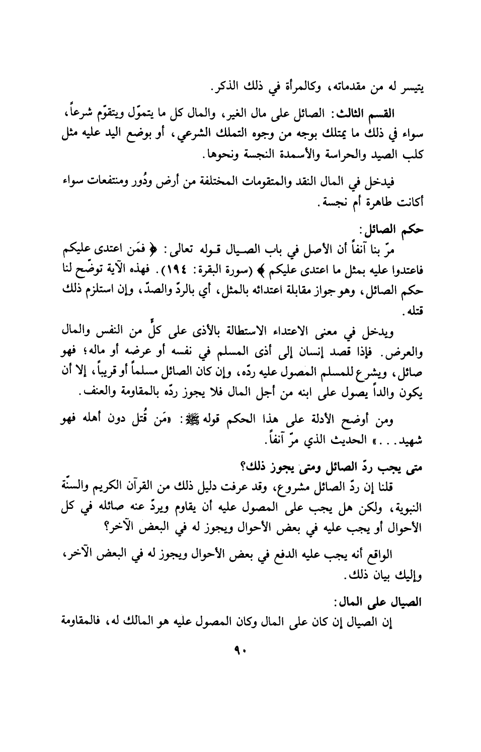 إن الصيال إن كان على المال وكان المصول عليه هو المالك له فالمقاومة