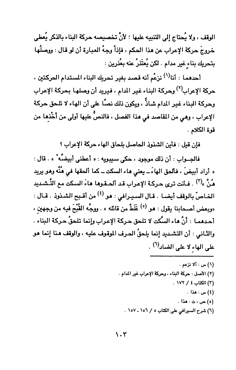 وحركة البناء غير المدام شاذ ويكون ذلك نصا على أن الهاء لا تلحق حركة