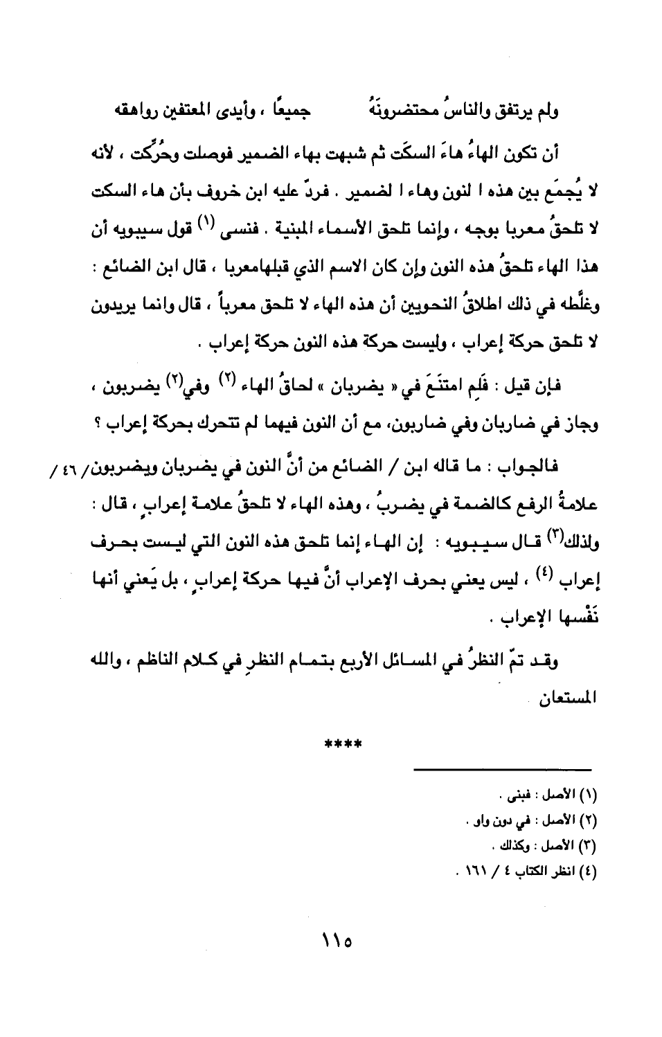 نفسها الإعراب وقد تم النظرُ في المسائل الأربع بتمام النظرِ في كلام الناظم، والله المستعان