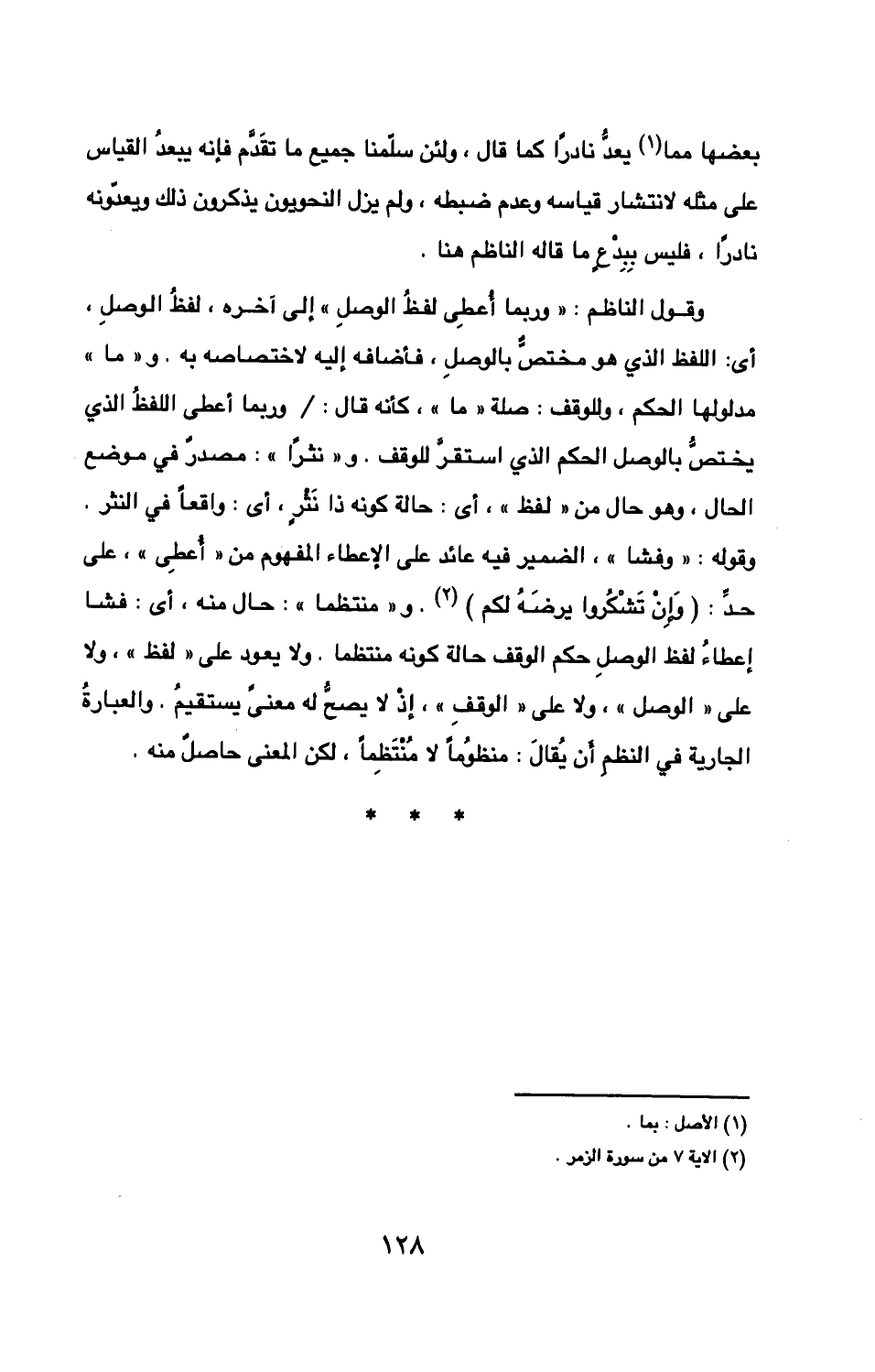 على «الوصل» ولا على «الوقف» إذْ لا يصحُّ له معنًى يستقيمُ. والعبارةُ