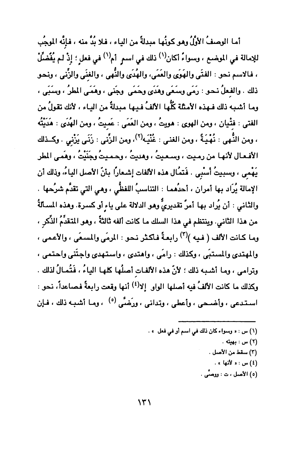 يَهْمِي) و (سبيتُ أسْبِي). فتُمال هذه الألفات إشعارًا بأنّ الأصل الياءُ وذلك أن