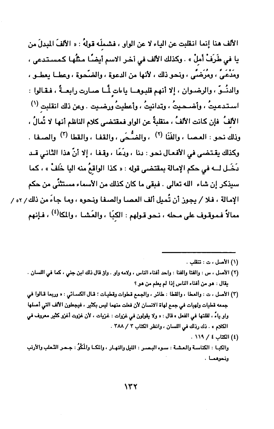 وذلك نحو (العصا) و (الفتا) و (الضُّحى) و (القفا) و (القطا) و (الصفا)