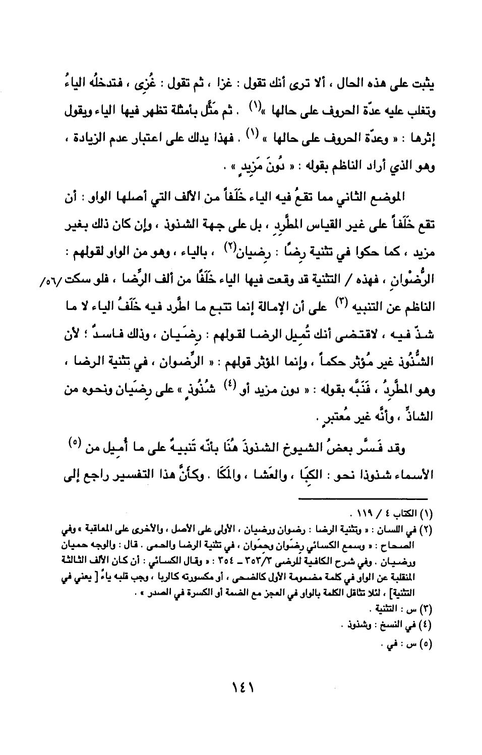 الشذوذ غير مُؤثر حكما وإنما المؤثر قولهم «الرِّضوان» في تثنية (الرضا)