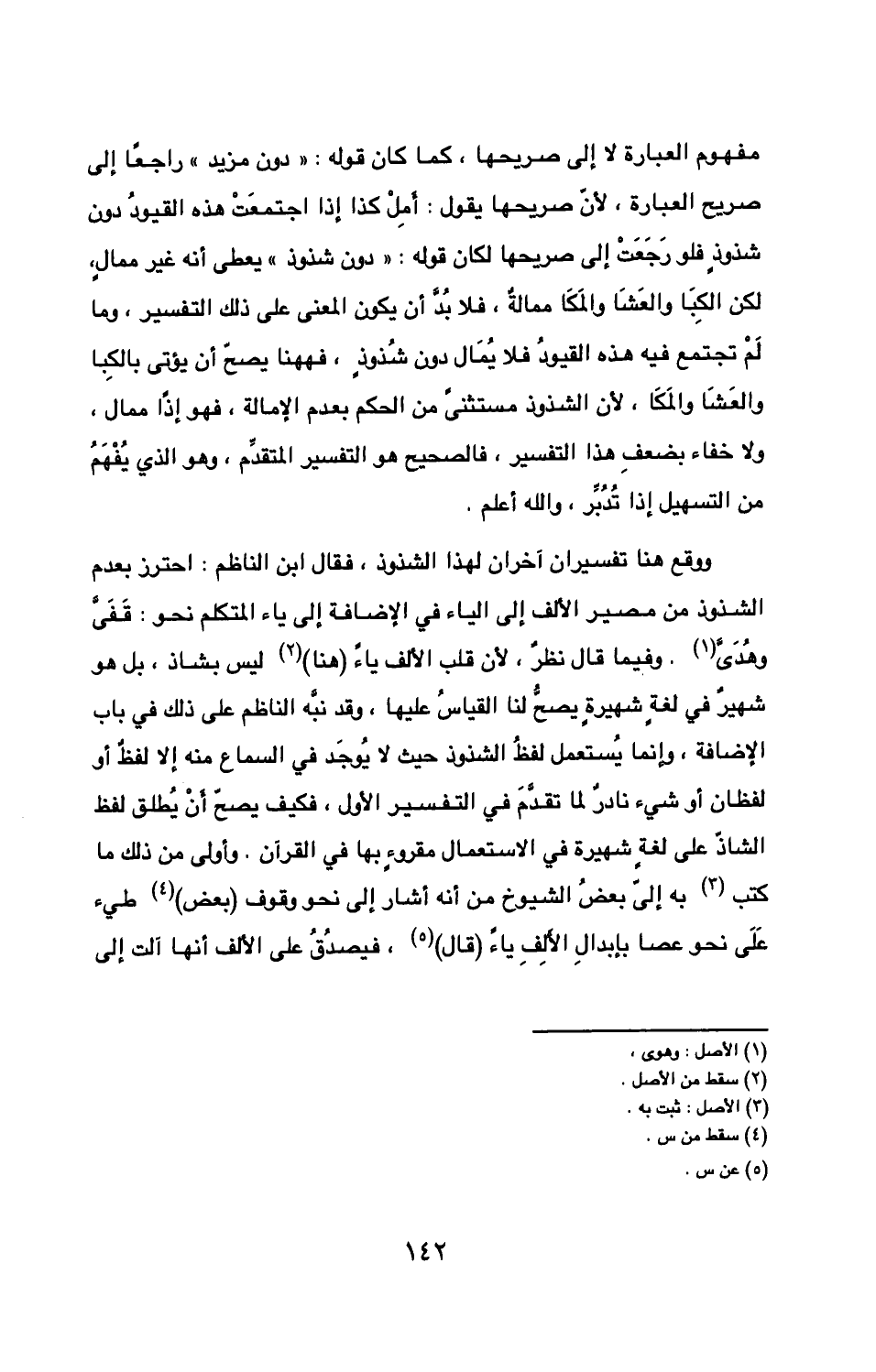 ووقع هنا تفسيران آخران لهذا الشذوذ فقال ابن الناظم: احترز بعدم