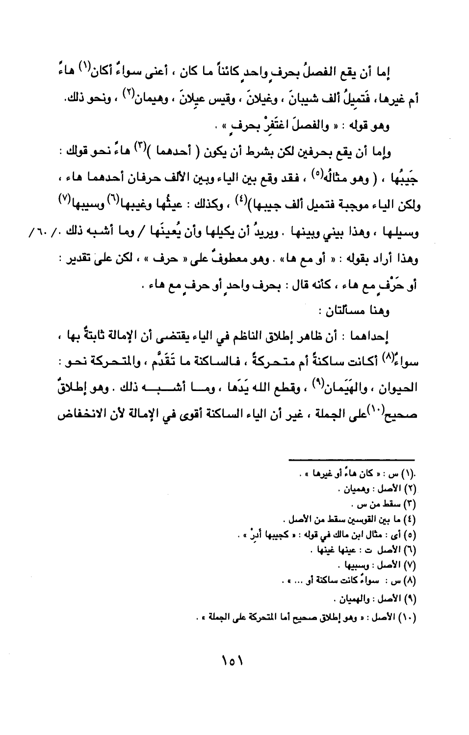 إما أن يقع الفصل بحرف واحد كائنا ما كان أعني سواءٌ أكان هاءً