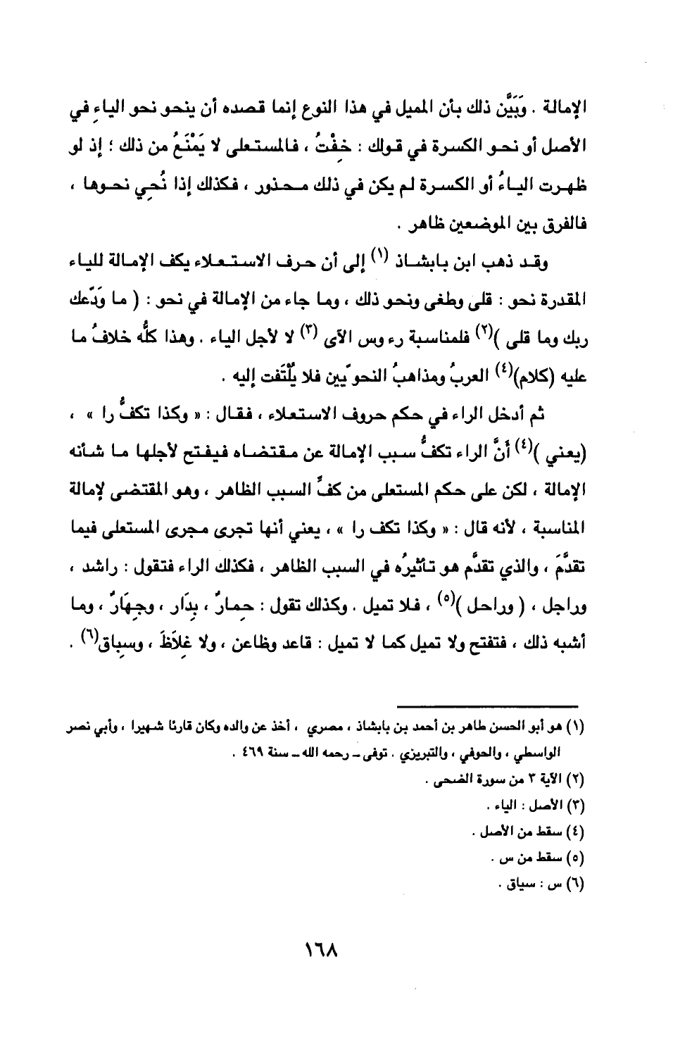 وقد ذهب ابن بابشاذ إلى أن حرف الاستعلاء يكف الإمالة للياء