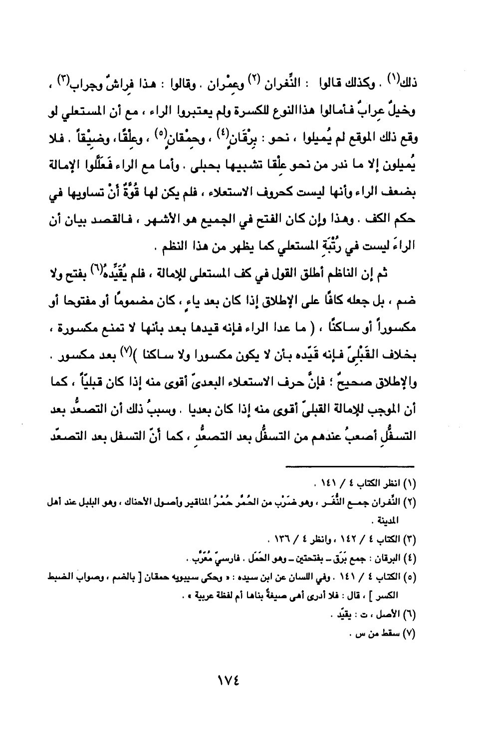 وخيل عراب فأمالوا هذا النوع للكسرة ولم يعتبروا الراء مع أن المستعلي لو