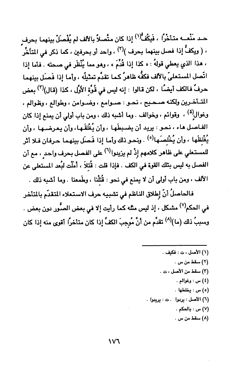 حد منعه متأخرا فيكف إذا كان متصلا بالألف لم يفصل بينهما بحرف