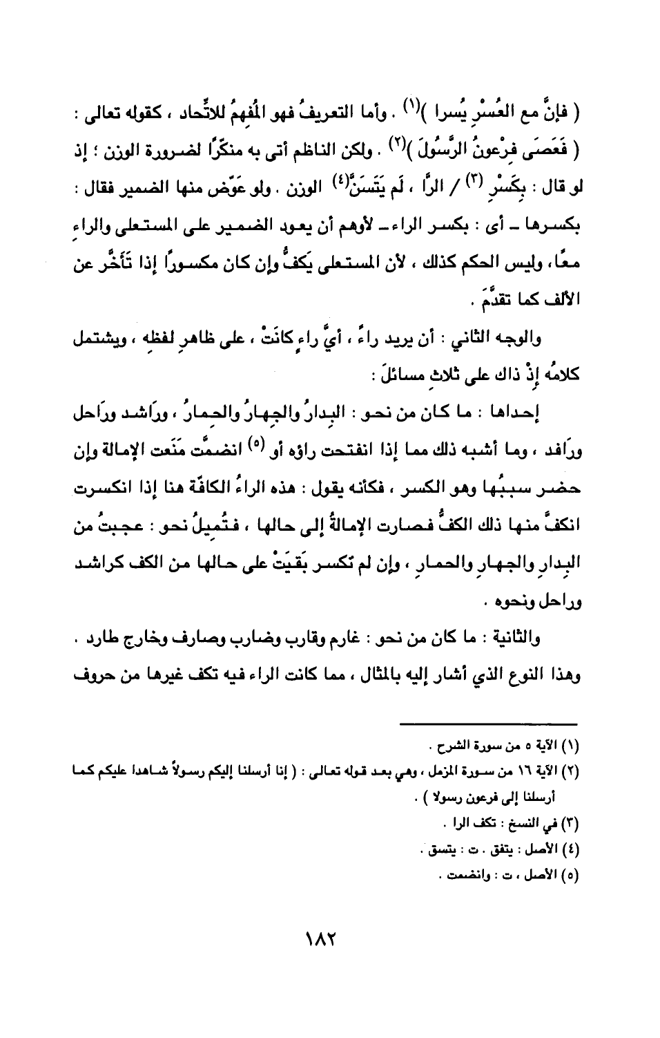 وهذا النوع الذي أشار إليه بالمثال مما كانت الراء فيه تكف غيرها من حروف