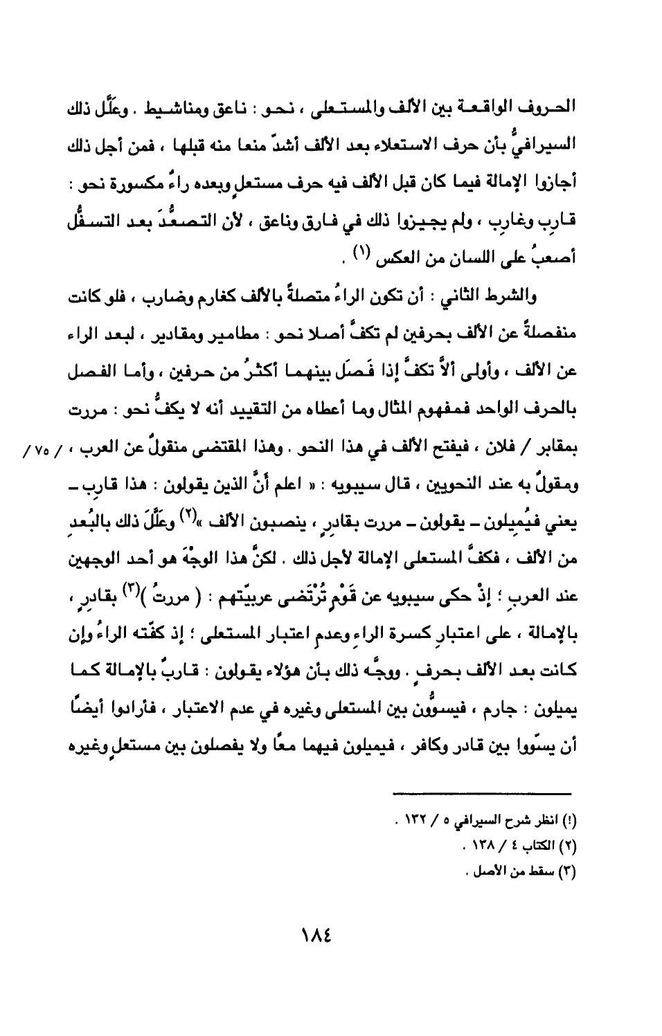 يعني فيميلون - يقولون - مررت بقادر ينصبون الألف» وعلل ذلك بالبعد