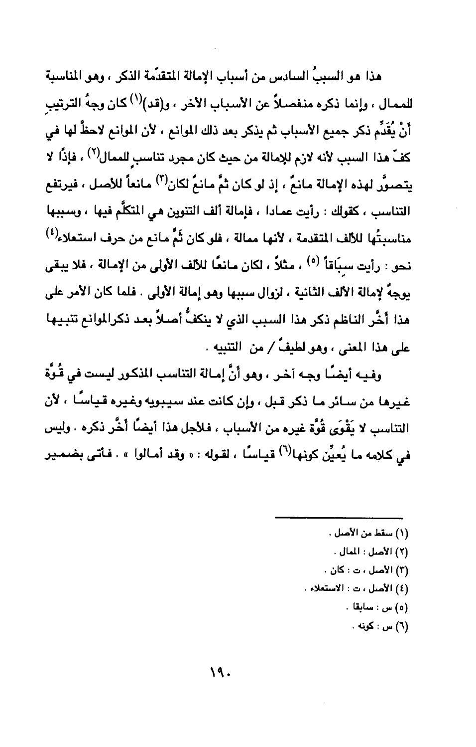 كف هذا السبب لأنه لازم للإمالة من حيث كان مجرد تناسب للمال فإذا لا