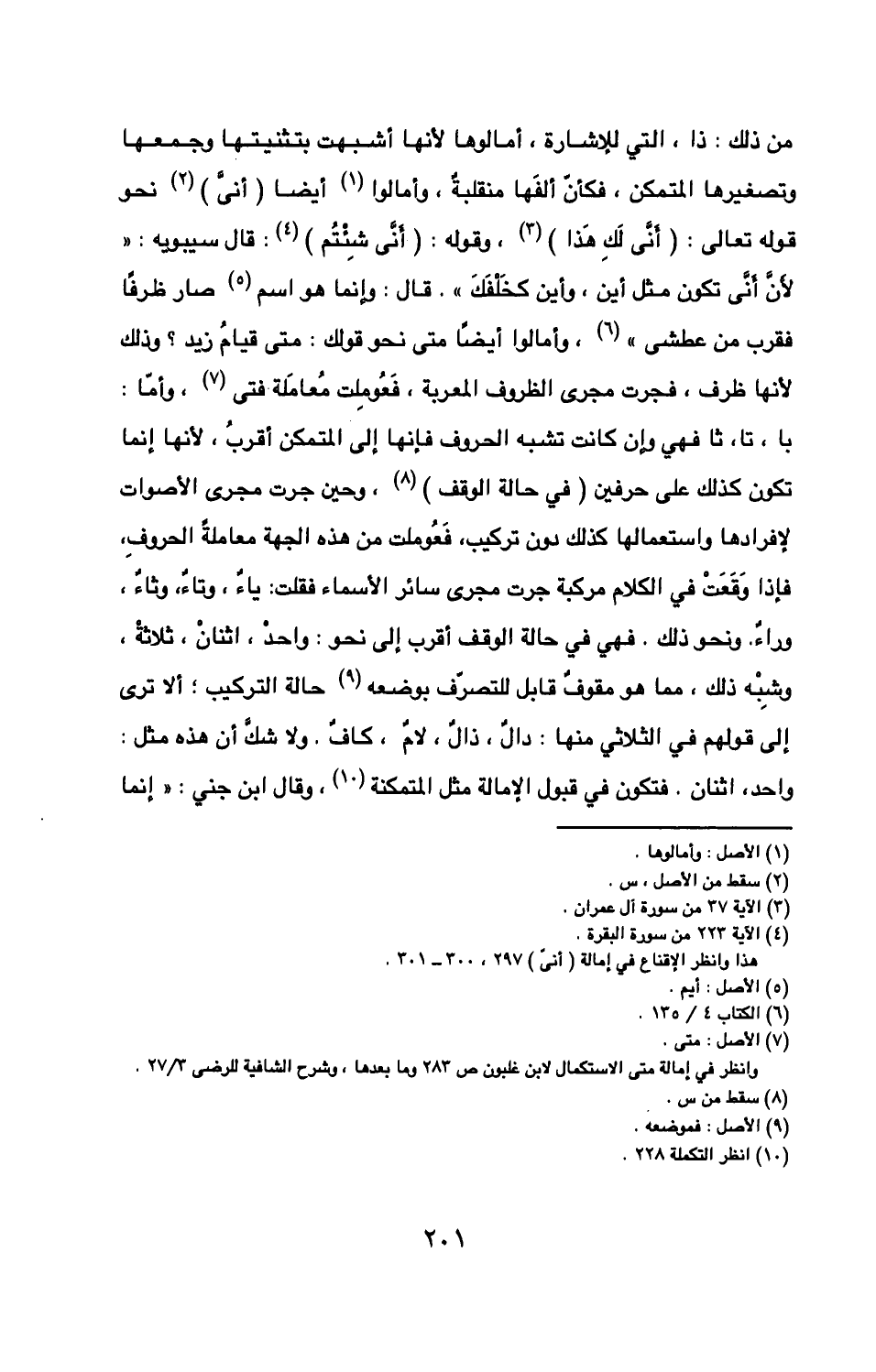 من ذلك ذا التي للإشارة أمالوها لأنا أشبهت بتثنيتها وجمعها