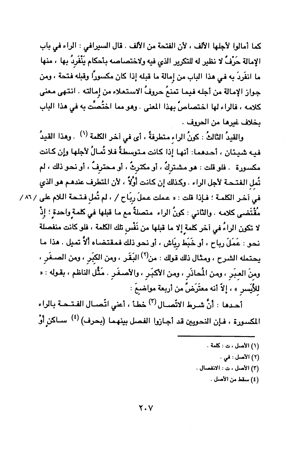 مقتضى كلامه والثاني كون الراء متصلة مع ما قبلها في كلمة واحدة إذ