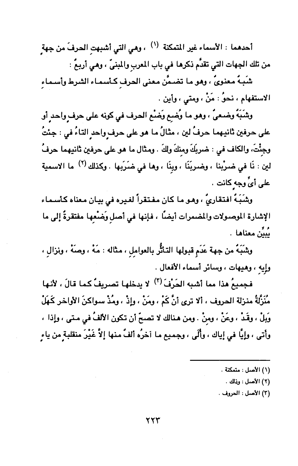 شبهٌ معنوي، وهو ما تضمن معنى الحرف كأسماء الشرط وأسماء